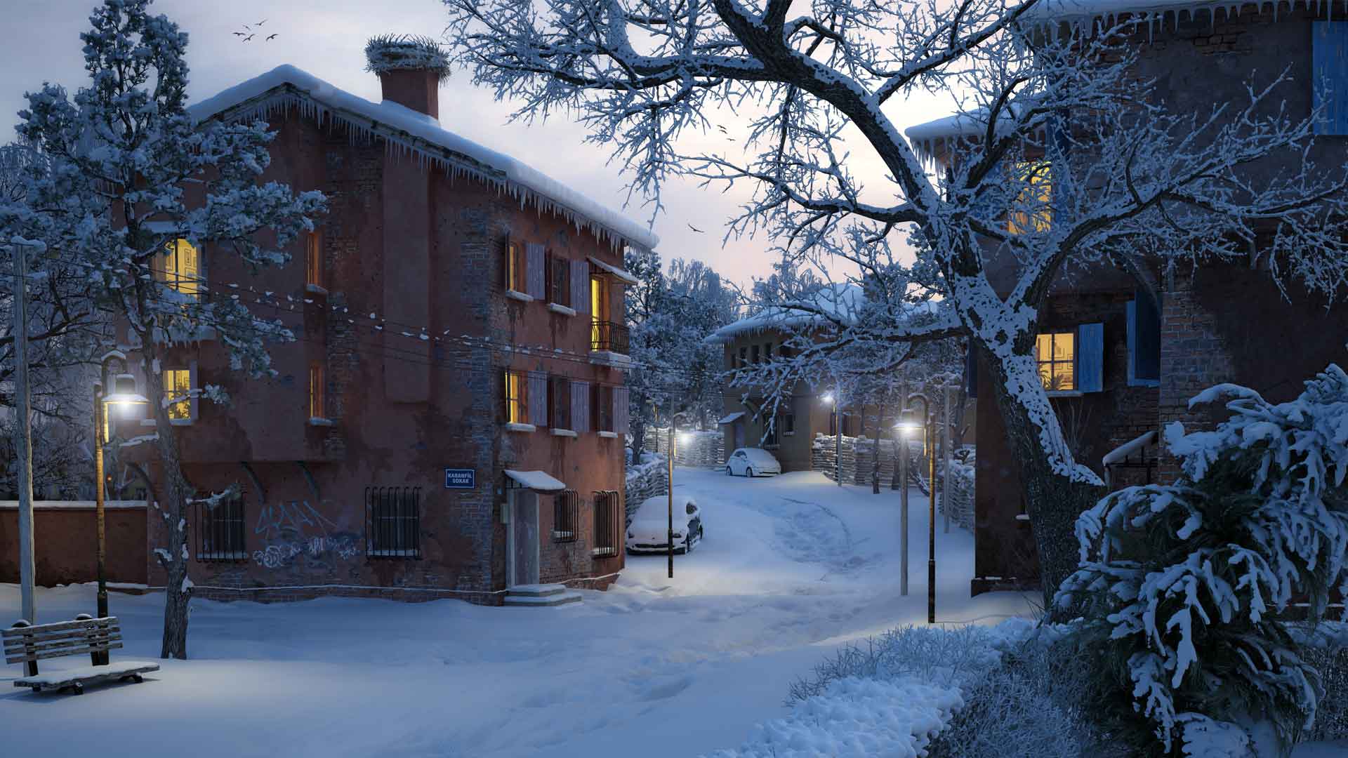 Turkish artist Cihan Özkan has created a realistic winter landscape.