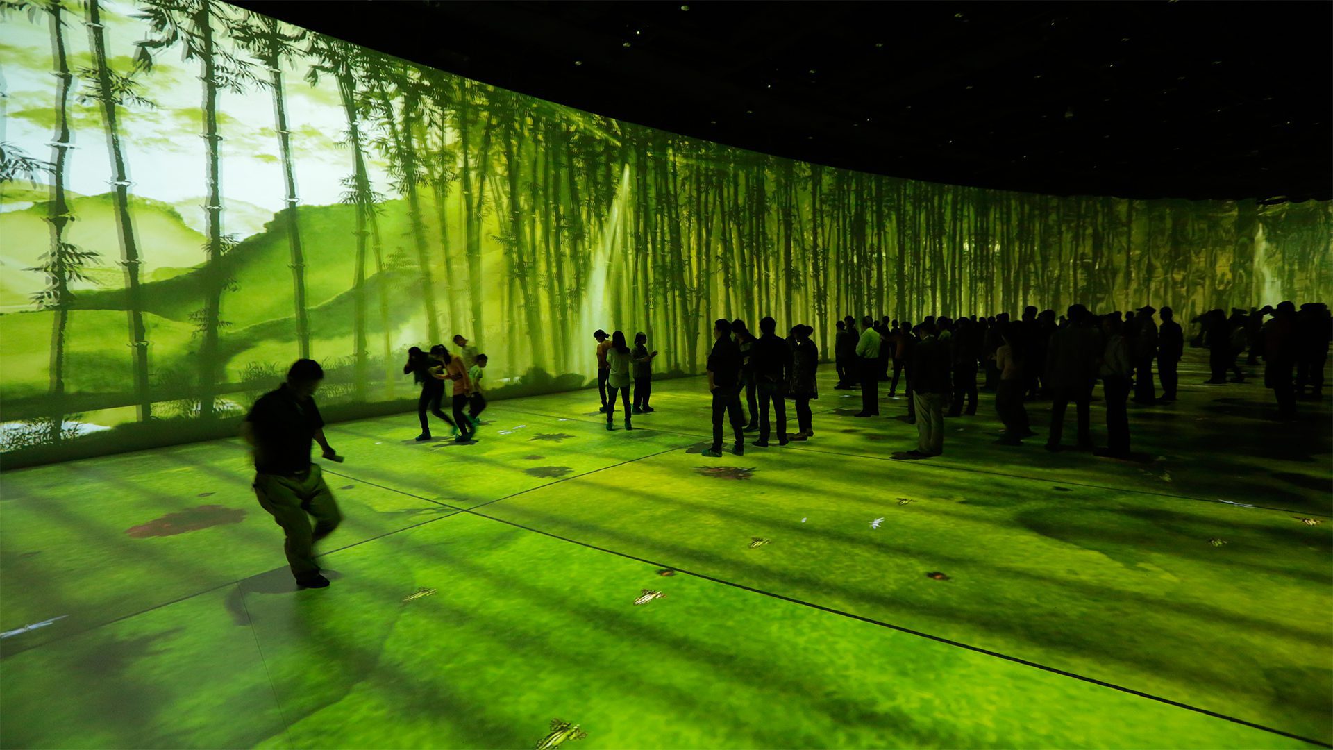 The 400-square-metre room immerses visitors for 15 minutes in the history of the kingdom of Wu during the Spring and Autumn Annals of 514 to 496 BC. Behind this is a system of 22 high-resolution projectors and more than 30 synchronised computers. These process the signals from 14 tracking cameras, generate real-time 2D and 3D graphics and blend them with the pre-produced film material. There is also a soundtrack with more than 30 channels.