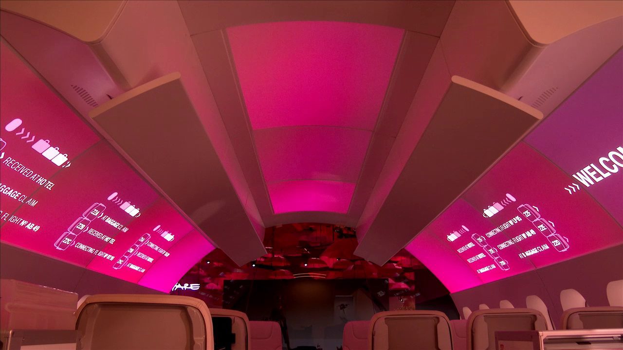 At CeBIT 2014, visitors were able to experience a future vision of a flight in an Airbus. The combination of model, projection mapping, monitors and light enabled a new flight experience for interested passengers. Additional monitors and the use of iPads made it possible to display travel information, for example.
