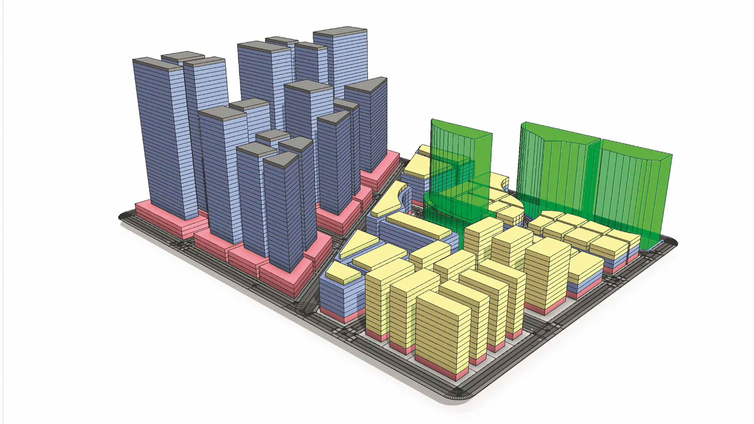 Thanks to numerous performance improvements, the drawing and transformation tools are now more precise and responsive. In addition to the existing tool enhancements, CityEngine has now also received a Boolean subtraction tool for 2D shapes due to popular demand. The offset tool is now called “Offset Shapes” and is located behind “Subtract Shapes” in the main menu. The ability to draw arcs with the polygon creation tool has also been improved in several places.