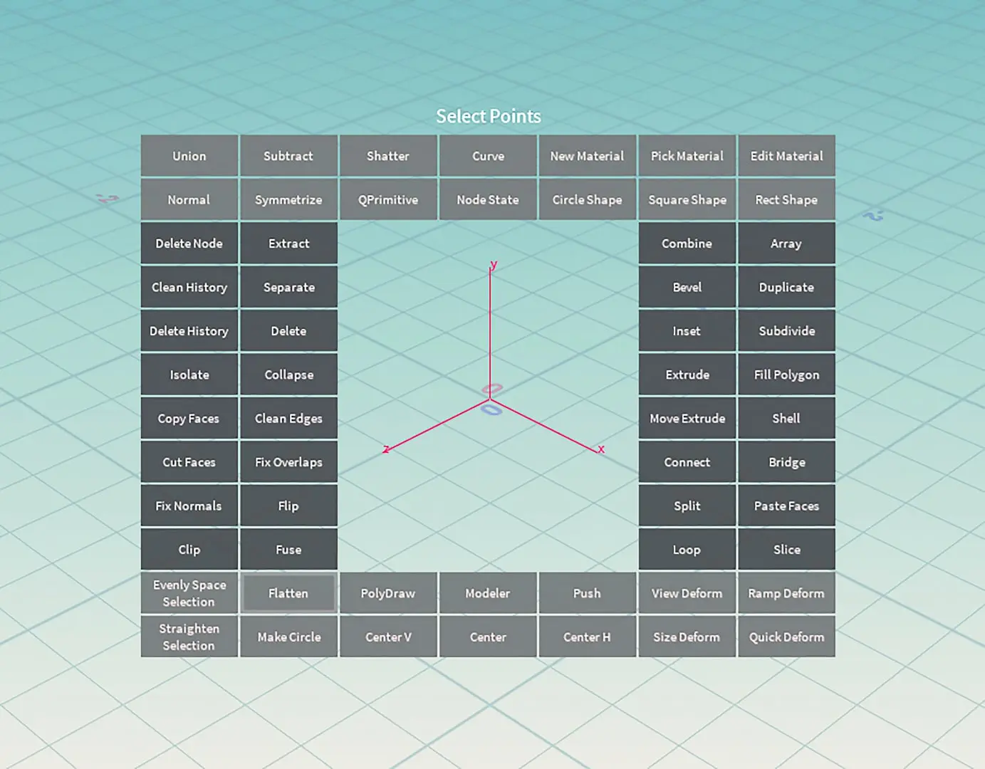 The standard tools in the quick selection menu are also called DM Mesh Tools. You could also call them a symbolic Swiss army knife for modelling. They include tools for so-called flattening. A whole series of vertices can be optimally aligned to a desired axis – horizontally or vertically with the starting point. The selected vertices can also be centred horizontally or vertically at the touch of a button.