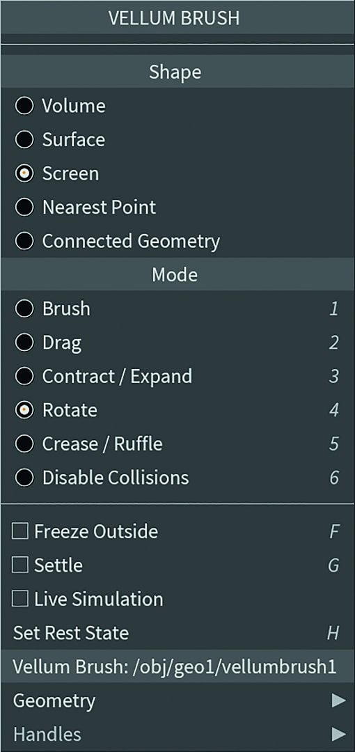But let’s get straight to my highlight: Vellum becomes interactive and gets presets for the fabrics: leather, silk, etc. Vellum is a fabric simulation, but it can also be used for ropes, balloons, soft bodies and grains. All types of vellum can now be worked on interactively with brushes, except for grains. As far as fabric is concerned, I only knew this from Marvelous Designer. Pillows, blankets, balloons, jelly babies, ropes and spaghetti etc. can be plucked, thrown, crumpled, compressed and stretched both with and without gravity – really great fun! The whole thing goes in layers and is very art direction-friendly. SideFX announced during the launch event that such interactive tools will find their way into Houdini more and more in the future. The Python viewport handles are used here, for example.