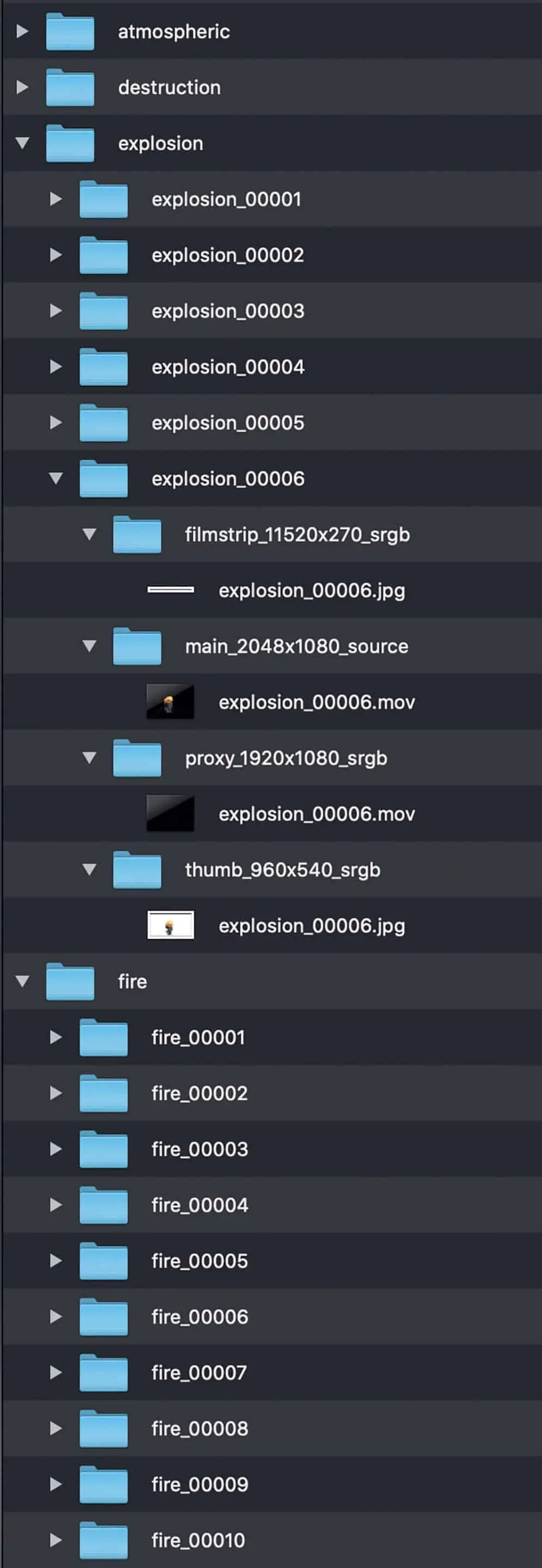 The minimum basic requirement of the software is that there are thumbnails for each element. All information is stored in a database so that you can work more effectively. For videos and image sequences, it is recommended to render a filmstrip. The entire clip is reduced to a length of around 24 frames. If you move the mouse over the preview, you can get a quick impression of the content of the sequence. This scrubbing feature is very helpful in the gallery view. That’s all you need.