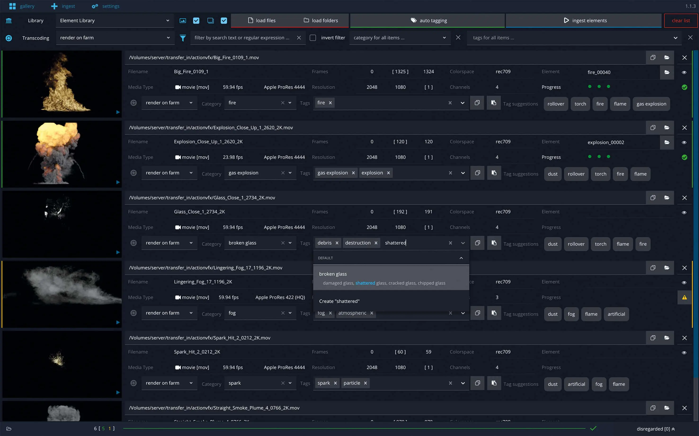 Jonas Kluger: The data can be analyzed by users using auto tagging before it is ingested in order to find the best possible tags and tag them automatically. This works with a machine learning model from Das Element that has been specially trained with thousands of VFX elements.