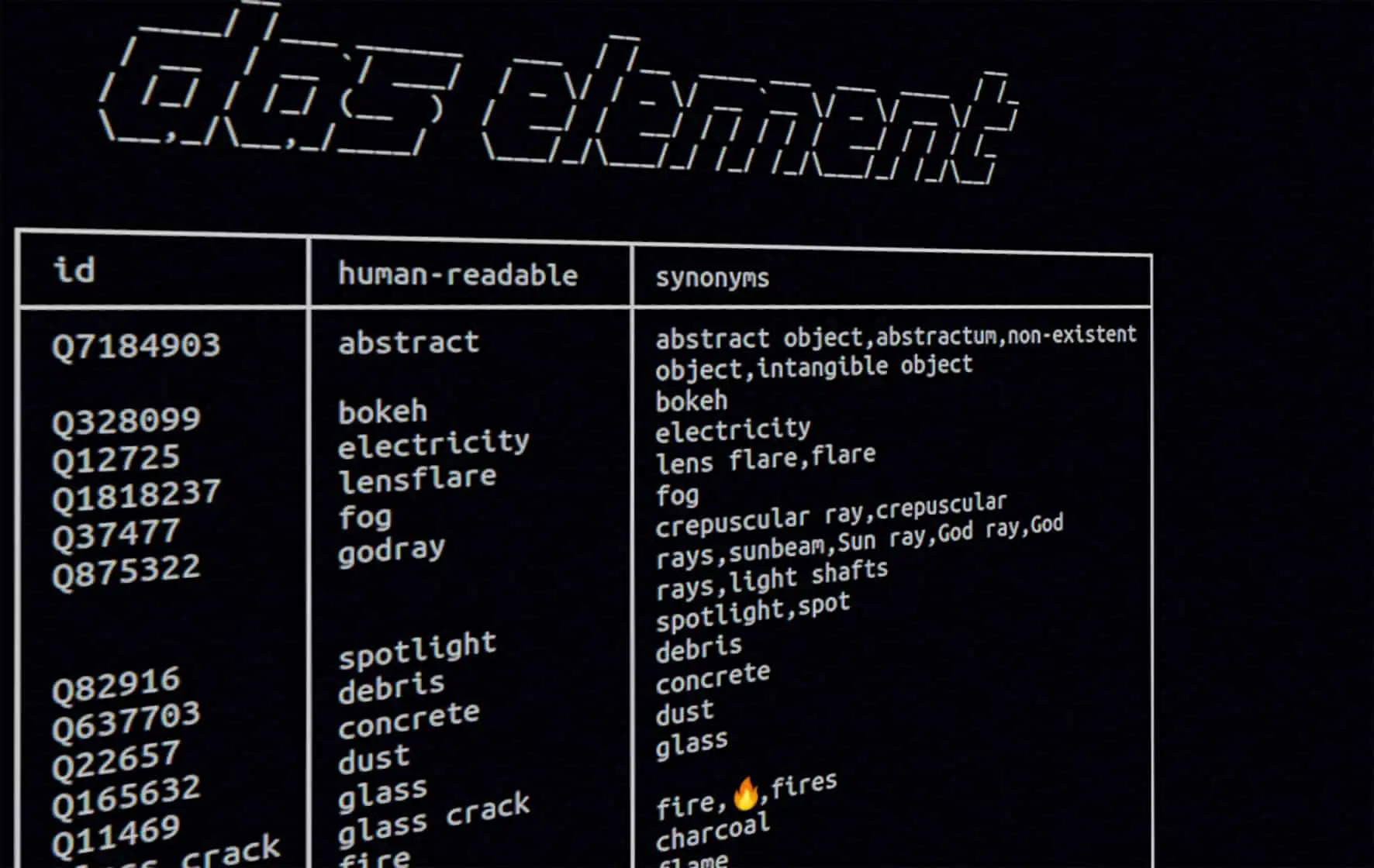 The beauty of the VFX industry is that we come together from all parts of the world. With that in mind, Das Element focuses on finding a common vocabulary that unites all of our languages. The software uses descriptions and synonyms for each category from publicly available sources.