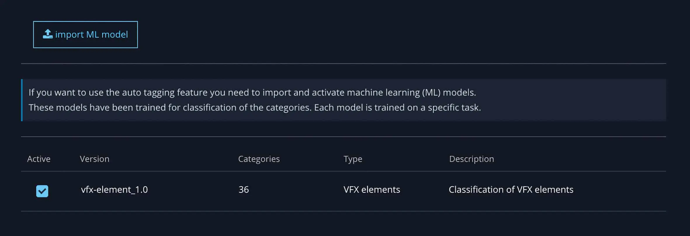 As soon as elements are added to the library, a second machine learning model is trained in the background. This model is based on existing elements in the library. The more elements are added, the better it gets. In the ingest view, you receive suggestions as to which category it could probably be. The idea is to develop an independent model that can be trained on any category as long as there are enough training samples. As the library grows, the model becomes more accurate.