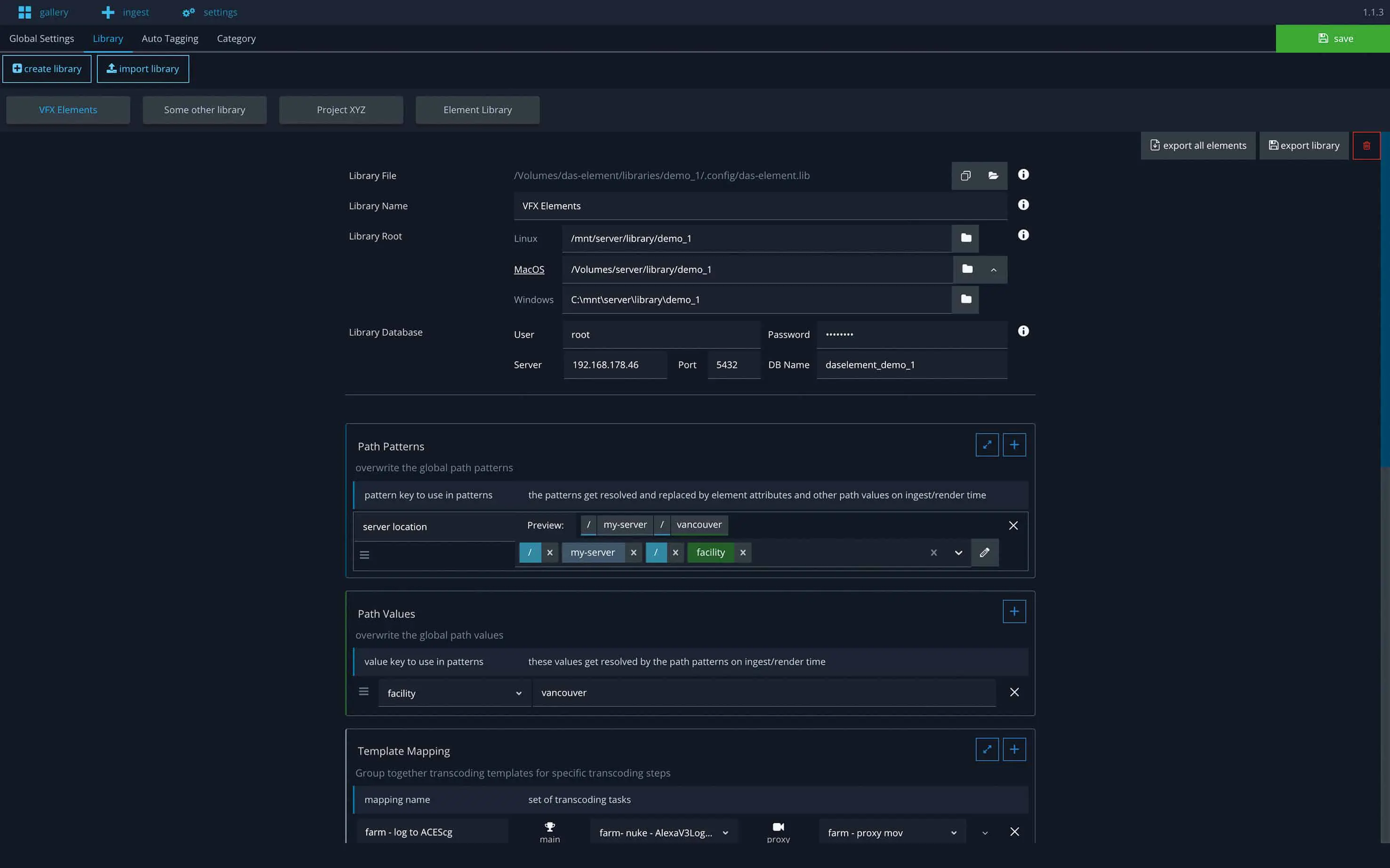 I would like to mention a few less obvious features that have proved to be important over many years of working with asset libraries. A lot of emphasis is placed on productive day-to-day work. For each library, a field called “Library Root” is used to define where the actual data is located. The big advantage of this is that you can move the entire folder, e.g. to a new network storage location if you purchase a new server or want to copy the elements to another company location. A simple adjustment of this root directory is sufficient and all data is directly re-linked and found. This scenario happens more often than you might think, which is why element can handle it. In addition, a library can be used with different operating systems, as only the root path needs to be adapted.