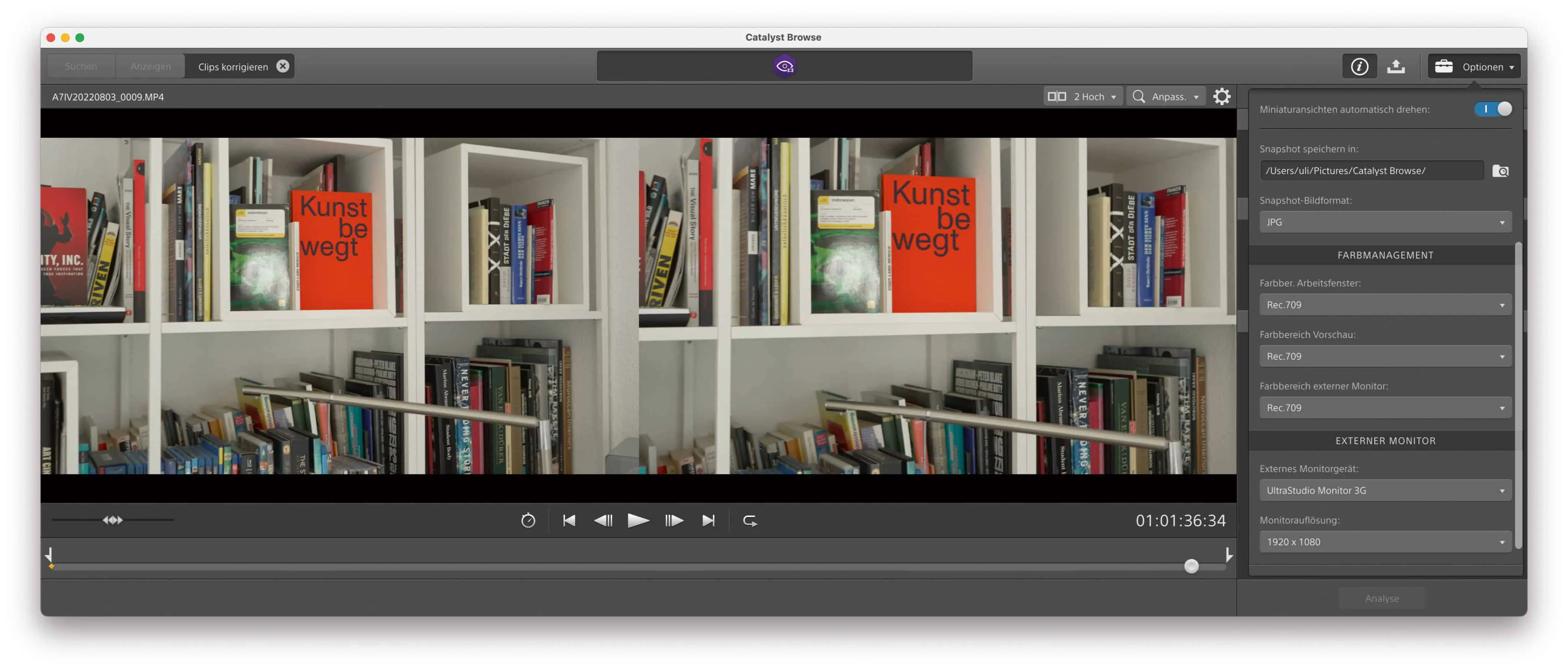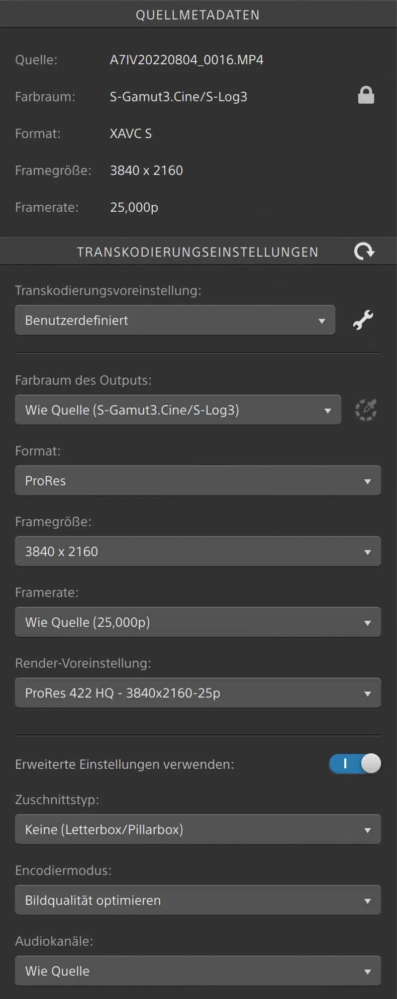 The full version of Catalyst Prepare offers ProRes HQ in 4K, but still no ProRes 4444. There is also the export of DNxHD and audio in WAV or MP3 (yuk). The functions for organising your media are considerably more extensive and copies can be created with checksums. It even offers a rough cut via storyboard and export as EDL. With a monthly subscription for €13.95, this version doesn’t cost the world if you just need it for a project. A detailed overview of the Catalyst versions can be found here.