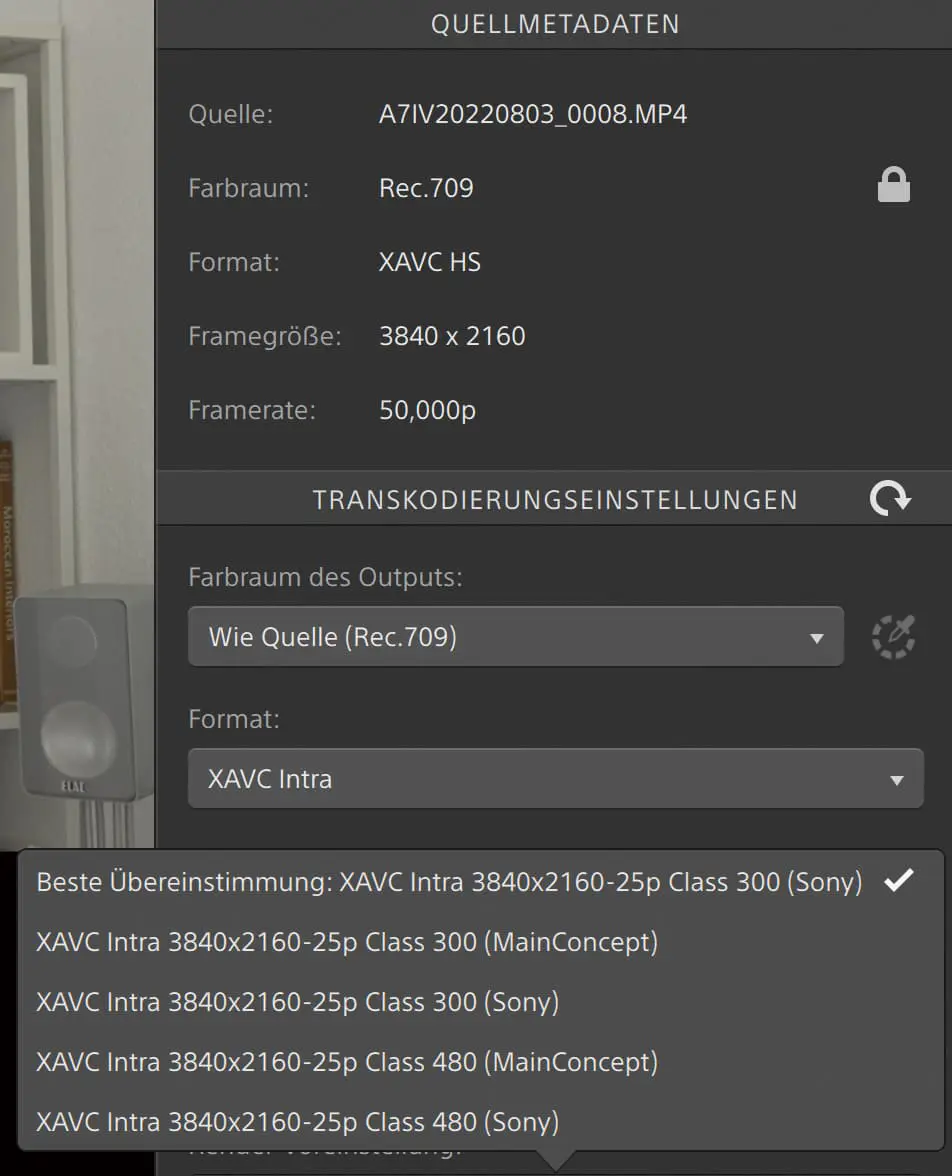 Of course, Catalyst Browse cannot compete with DaVinci Resolve (DR for short), but it offers quite good options for initial colour correction including waveform display. Alternatively, you can also leave log recordings in their original form, as stabilisation with gyro sensor data – unlike image-based stabilisation – is not dependent on good contrasts. Fortunately, even the free version supports high-quality output formats such as H.264 in 10 bit and 4:2:2 with a high data rate (up to XAVC Intra).
