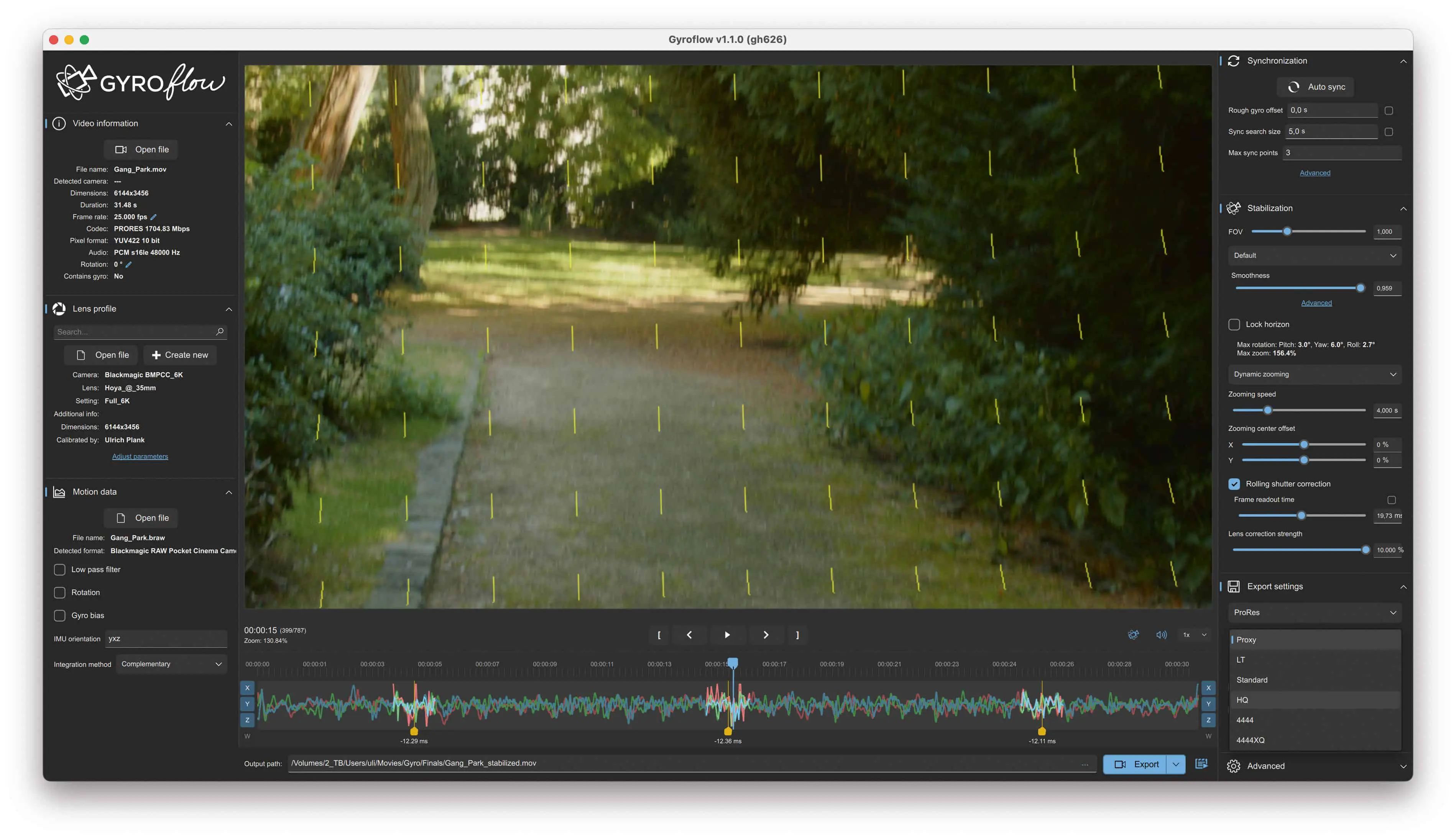 Gyroflow also leaves nothing to be desired when it comes to output; the stabilised material can be exported in very high-quality formats, but can also be compressed directly with x264 or x265 in good quality. Alternatively, you can output the stabilisation information generated in the program. With an OpenFX plug-in, this information is available directly in DR and other NLEs; all you have to do is enter the full path of the *.gyroflow file.