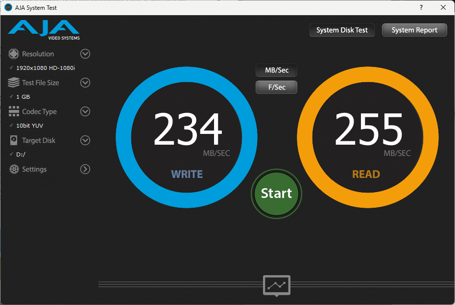 To test the speeds of the installed drives, I used the Aja system test. The 1TB M.2 Samsung 980 PRO NVMe and the 2TB M.2 Samsung 980 PRO NVMe had a read speed of 5429MB/sec and 5384MB/sec on a 1G file and the 8TB Seagate Ironwolf Pro HDD had a read speed of 255MB/sec. The write speeds were, in the same order, 4350 MB/sec, 4191 MB/sec and 234 MB/sec. The fact that the large hard drive is significantly slower was of course to be expected from the design. After all, it is only supposed to store the data.