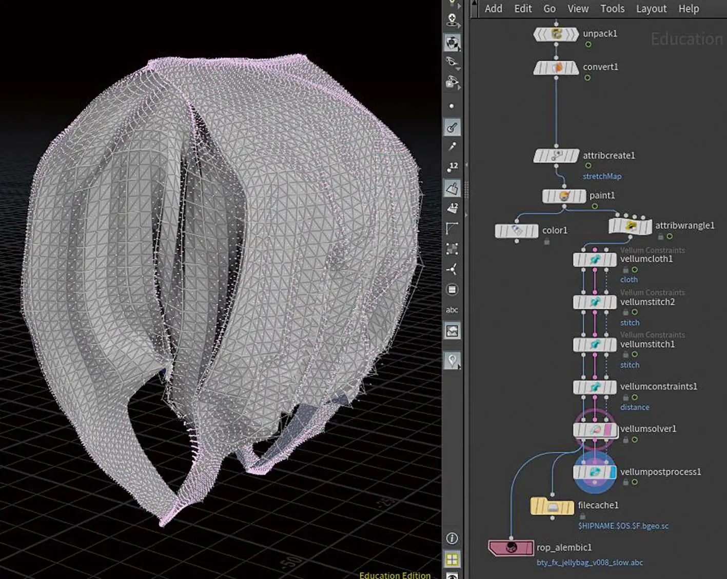 Pascal Schelbli: I think I’m speaking on behalf of both of them here, but I think what saved our butts was that we shot an underwater reference of all the materials. I also think that the turned backplates also contribute to the realism. Keyword bags: The challenge was that the geo moves “crumpled” to the animation and that could be solved a little more elegantly nowadays. We used Vellum to create a cloth simulation and generated the crumpling through displacement.