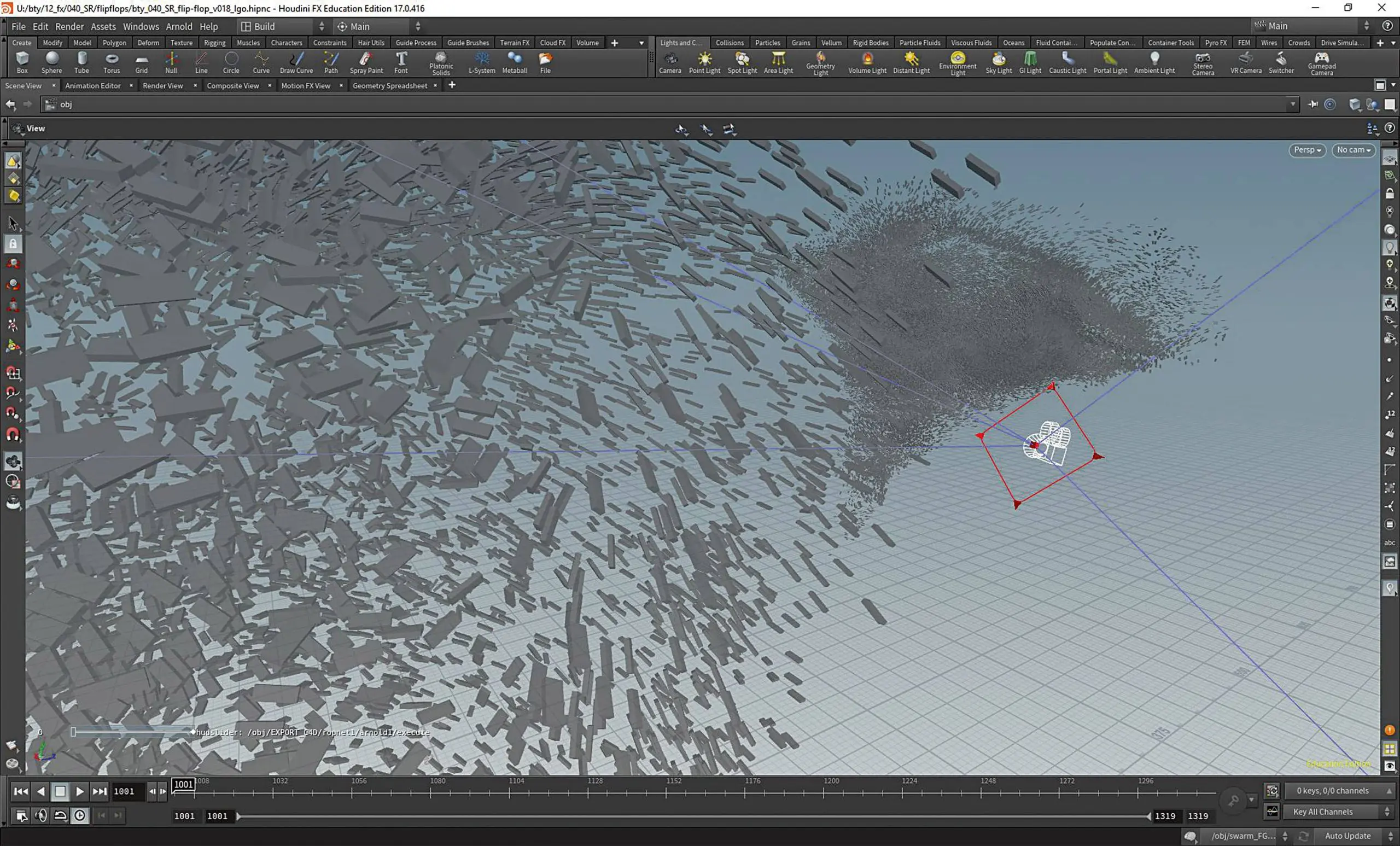 Marc Angele: Basically, there aren’t that many things that I think we would do differently today. As Pascal has already said, back then we rendered everything in Cinema 4D with Arnold. Today, I would definitely do it in Houdini. Sometimes we had quite a lot of problems transferring all the attributes from Houdini to C4D. This was particularly difficult with the flip-flop swarm. We had to come up with a few workarounds. Even just getting the velocity cleanly to Arnold via C4D was not easy. I still think Cinema 4D is a great tool and it has simplified a lot of things, but managing things like that was pretty time-consuming back then. What’s more, we would certainly have replaced or added one or two tools today. I would rather do it with Renderman today, but that’s just a matter of taste.