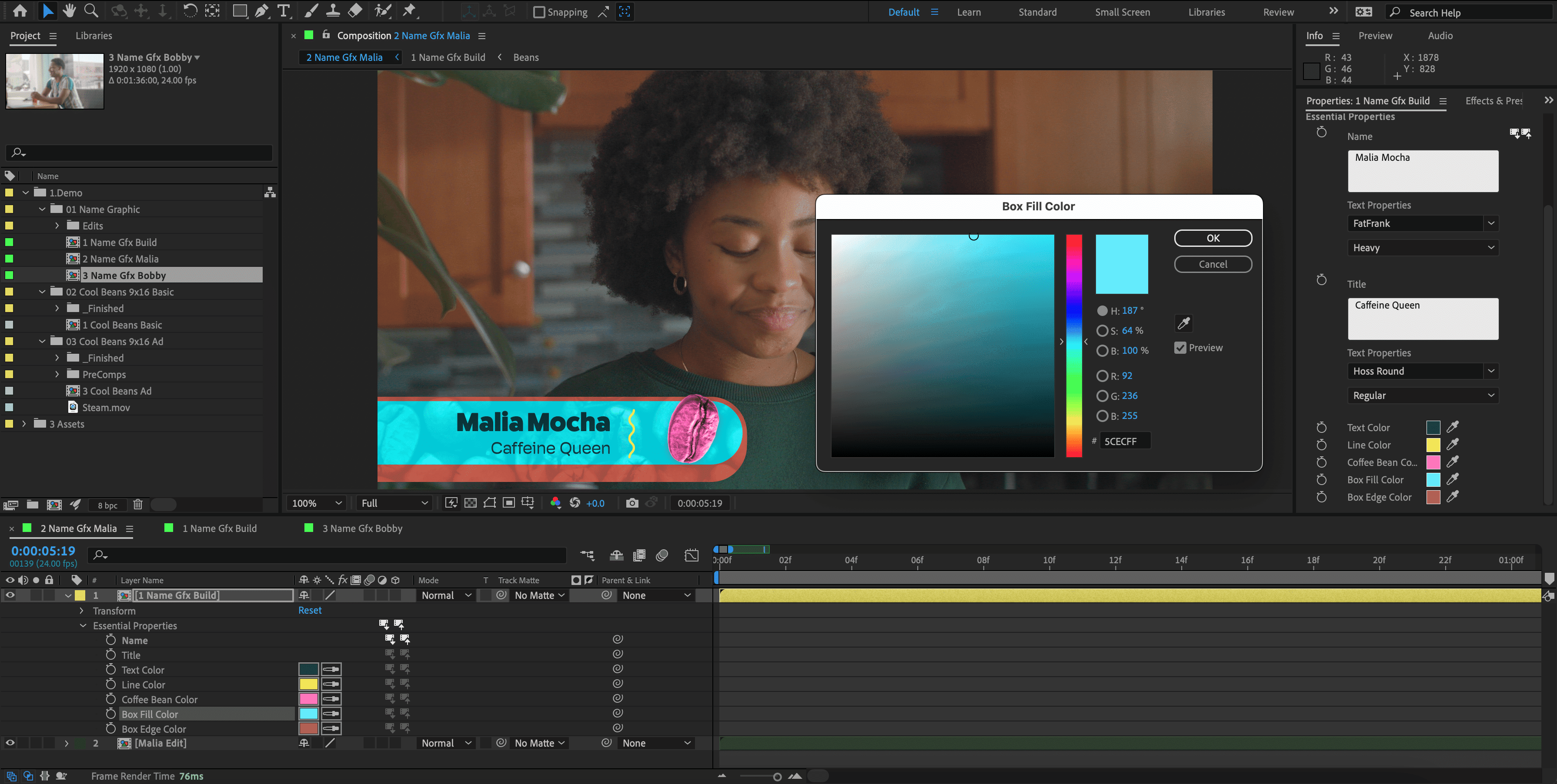- Other features include faster layer selection in the timeline, multi-frame shape rendering and new keyboard shortcuts for selectable track matting (i.e. coloured tracks).