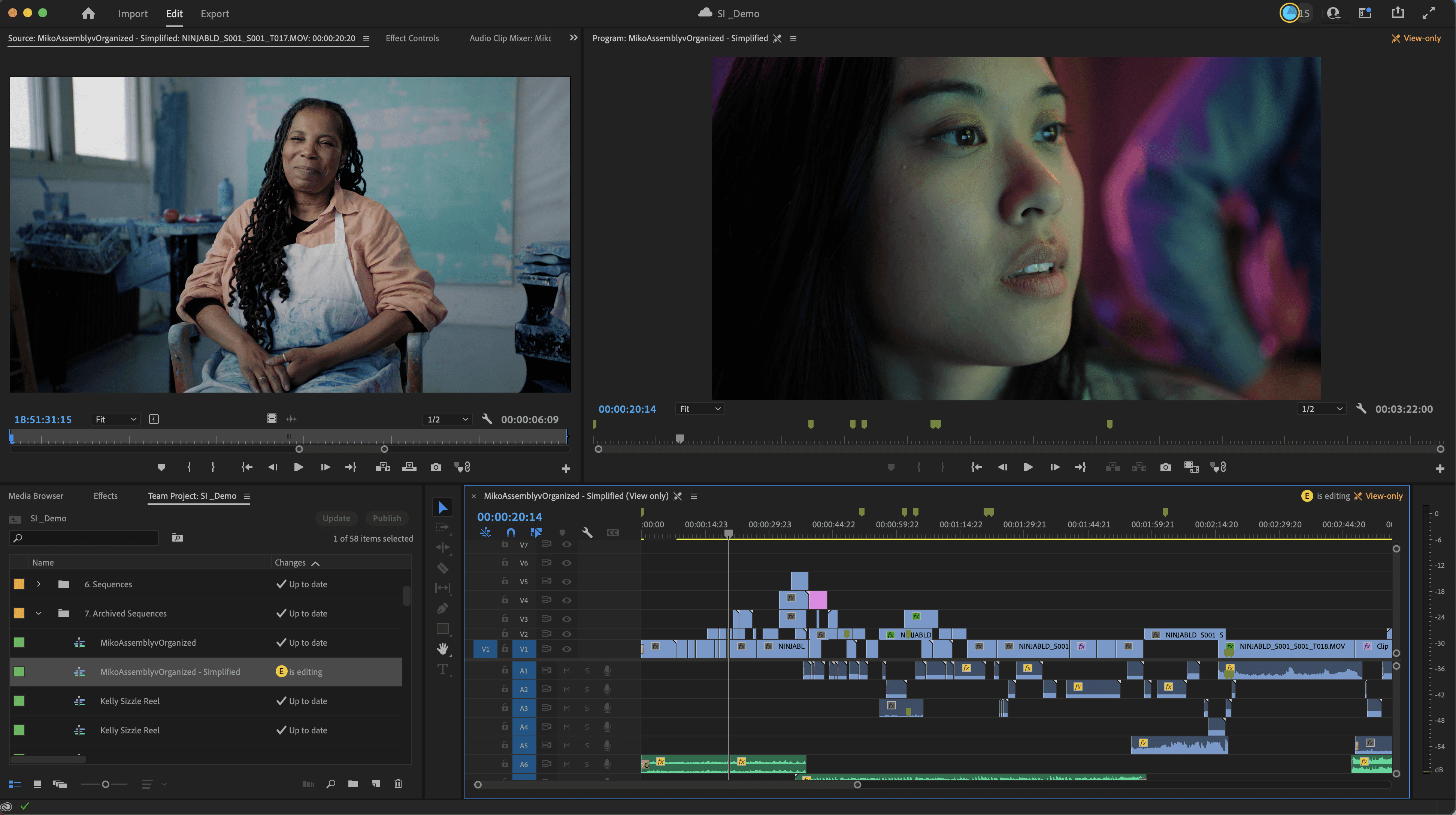 Collaborative editing enhancements include sequence locking, which allows active editors to lock a sequence so that it is uneditable by other editors until it is released. Presence indicators show who is working on released projects. In addition, “Work Offline” allows editors to continue working offline and publish changes after the fact without overwriting the work of others when they are back online. Frame.io support included in Creative Cloud enables secure sharing, collaborative review and project management for Premiere Pro edits, including direct export, upload and sharing capabilities.