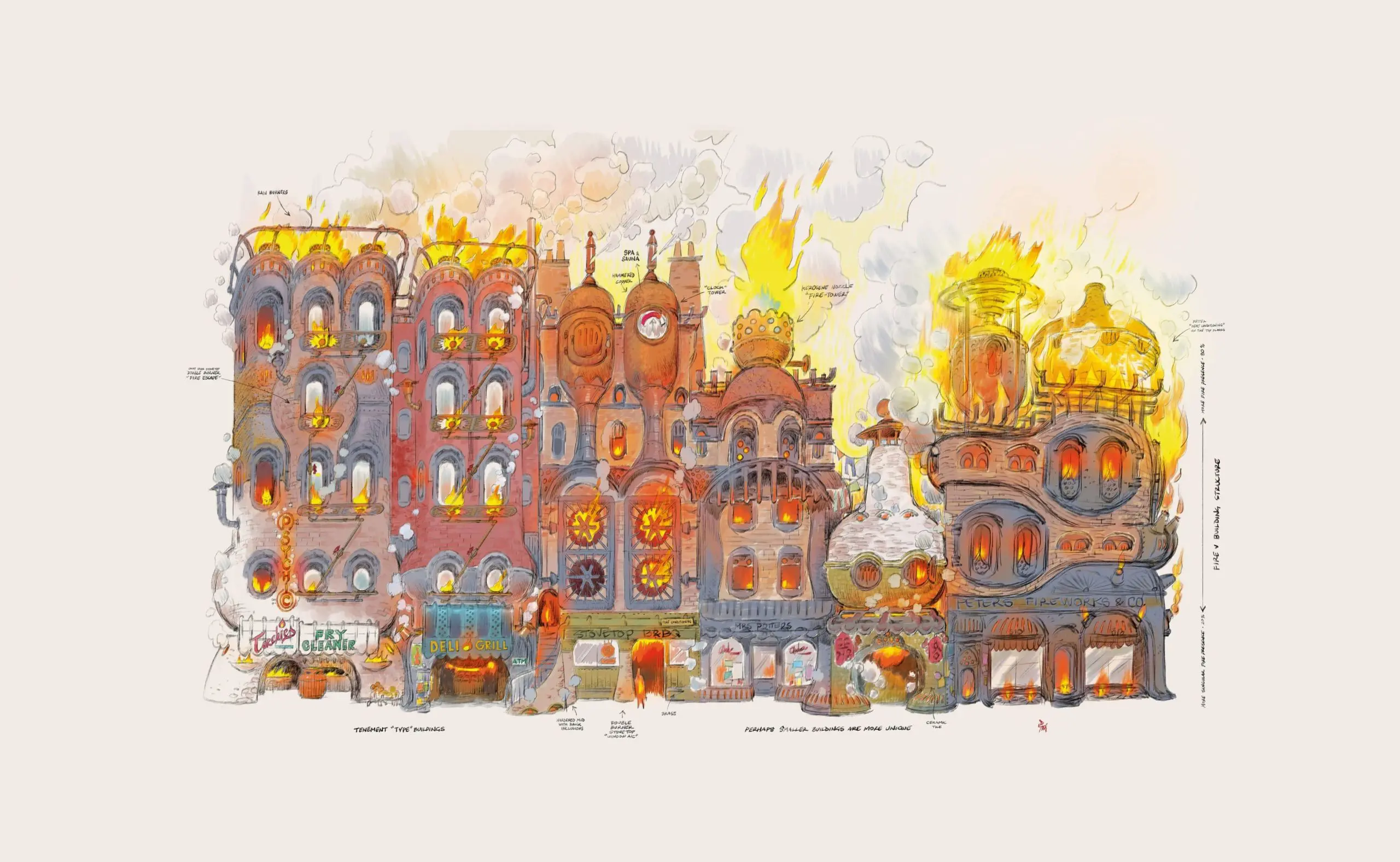 For the flames, we used “Neural style transfer” – basically machine learning to stylize the flames. Stylized flames because when simulation runs, it‘s a realistic fire. And the Style transfer “organized” the flames, so to speak, into more stylistic patterns, that are simpler and more pleasing for characters – so that was all custom work. And then we developed the “HEXport” – the Houdini Export – when an animator checks in the shot, the simulation automatically runs.
