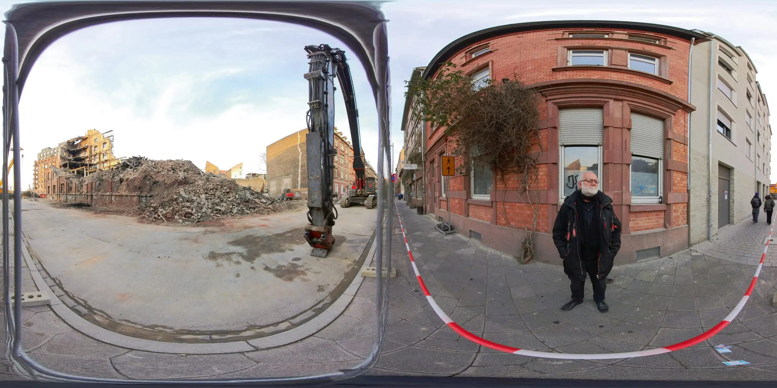 The AI seems to recognise the Equirectangular format in Photoshop, because my attempts to modify Böckstrasse in Jungbusch in Mannheim, where a historic building burnt down, also worked well directly in Photoshop. However, it should be noted that when saving as a JPG, Photoshop does not automatically set the flag by which Facebook, for example, recognises that it is a 360 degree image