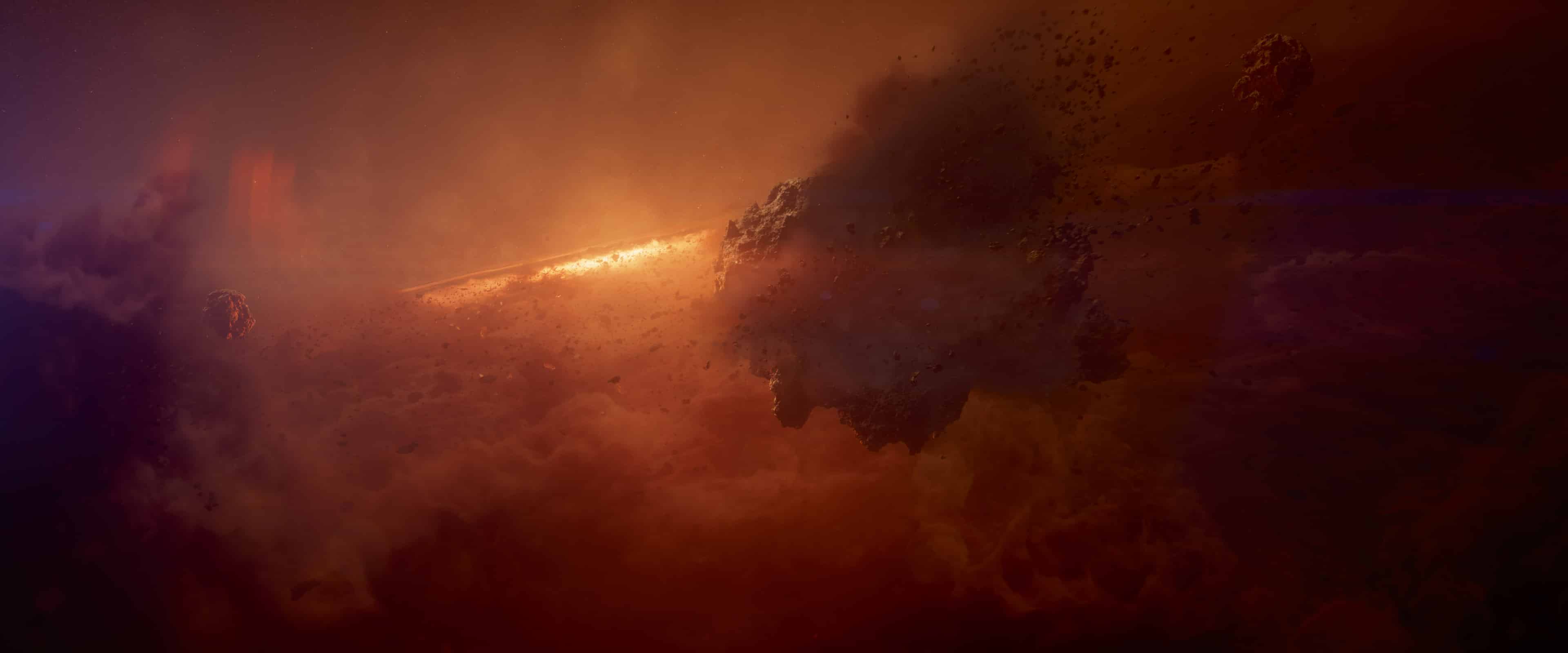 Paul Silcox: Houdini was our primary FX software though there were other packages used for simulation FX. For one sequence we handled a massive SPH dataset computed in SWIFT at Durham University on the Cosma supercomputer. The data arrived in HDF5 format and was converted to a usable format for visualisation in Houdini. We also use MASH in Maya, particles in nuke and we use After Effects with Element 3D.