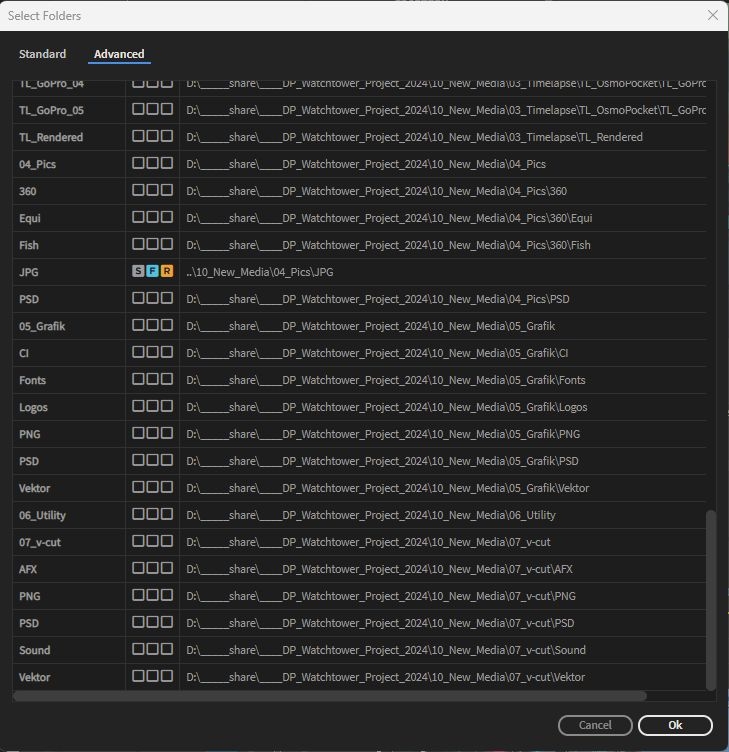 When I create a new project, I always copy my standard folder structure into the project folder. Then I copy all the footage files into the folders provided and open the standard project that I copied with the Premiere folder, rename it and save it under the project name with the date. Then comes the procedure that every editor knows. The footage files have to be imported into the correct bins in the project. This requires a lot of clicking, even though everything is already neatly sorted in the project folder. Watchtower does this work with just a few clicks. All you have to do is show the extension where the project folder is located and everything is imported automatically. And that’s not all. If new footage files are copied into the folder, these are also loaded into the project automatically or by clicking on the Sync button. It also copes with the nested folder structures of some cameras, such as RED or Sony cameras, and only imports the files actually required for editing.