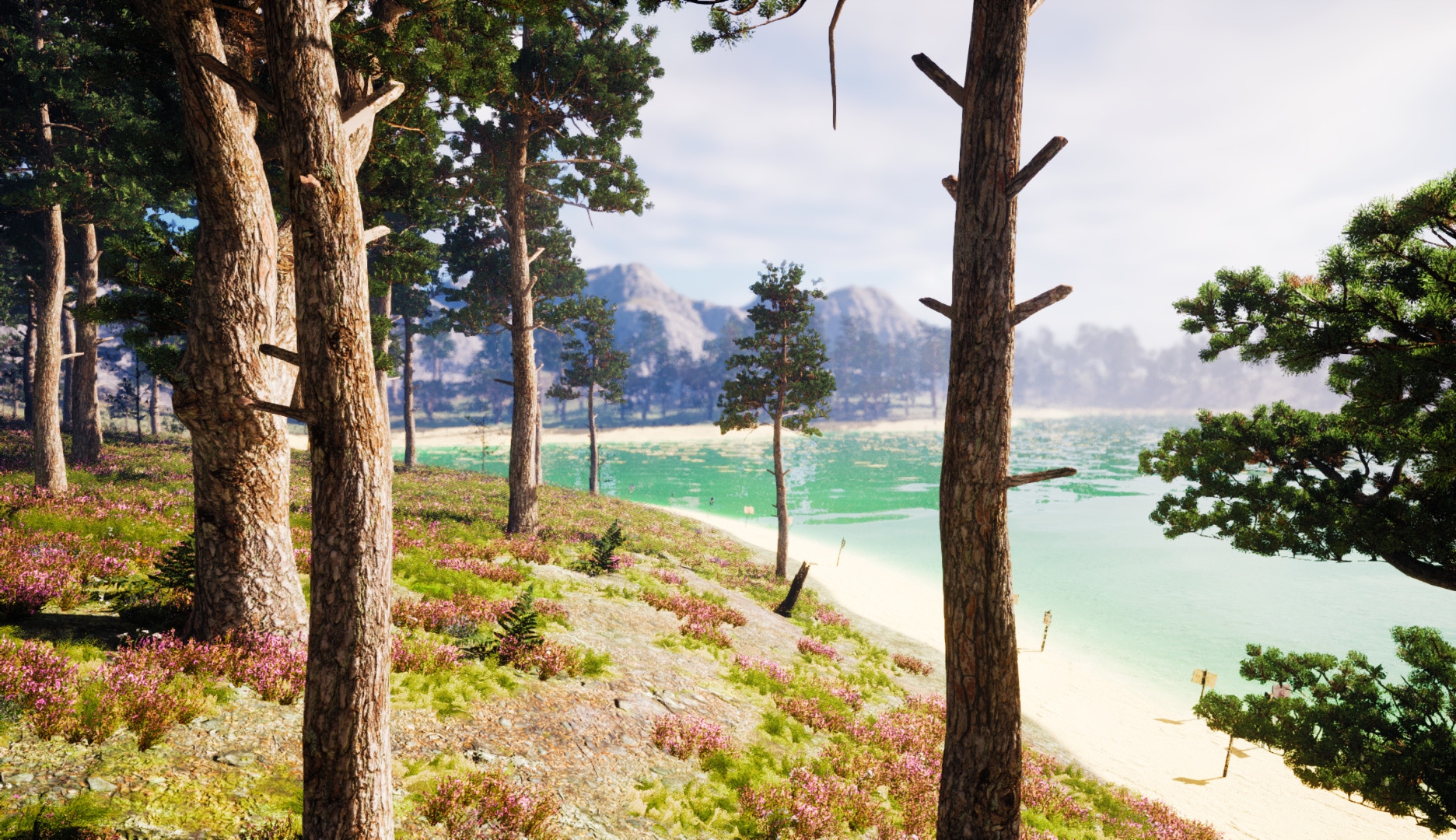 The asset pack is supplied with the corresponding elements, trees, bushes, rocks and even small parts such as mushrooms and debris. These are distributed across the landscape according to the parametric specifications of the PCG Graph, leaving out water and rocky ground. The demo map with an overgrown island presents the full splendour of the PCG elements and a short tour is a real joy. The preset assets can of course be swapped with your own assets to customise them to your own scenes.