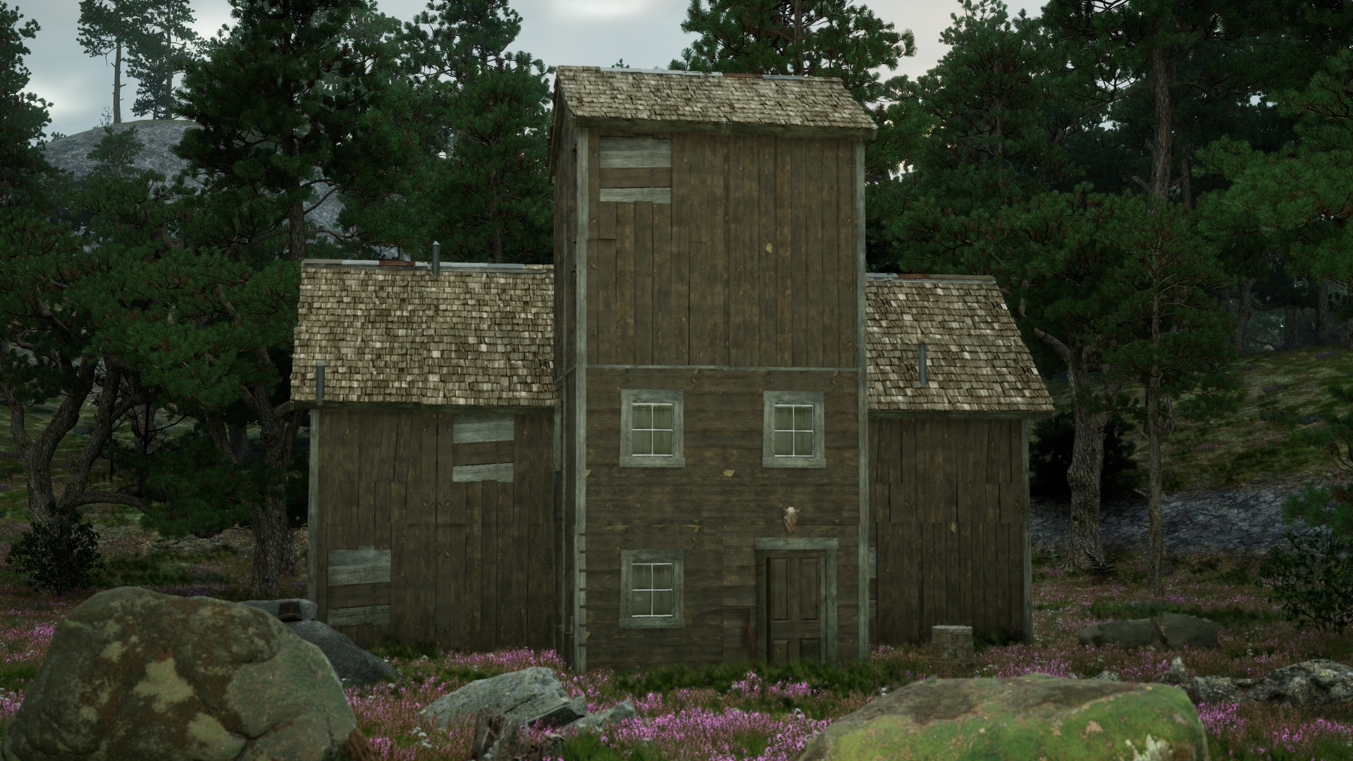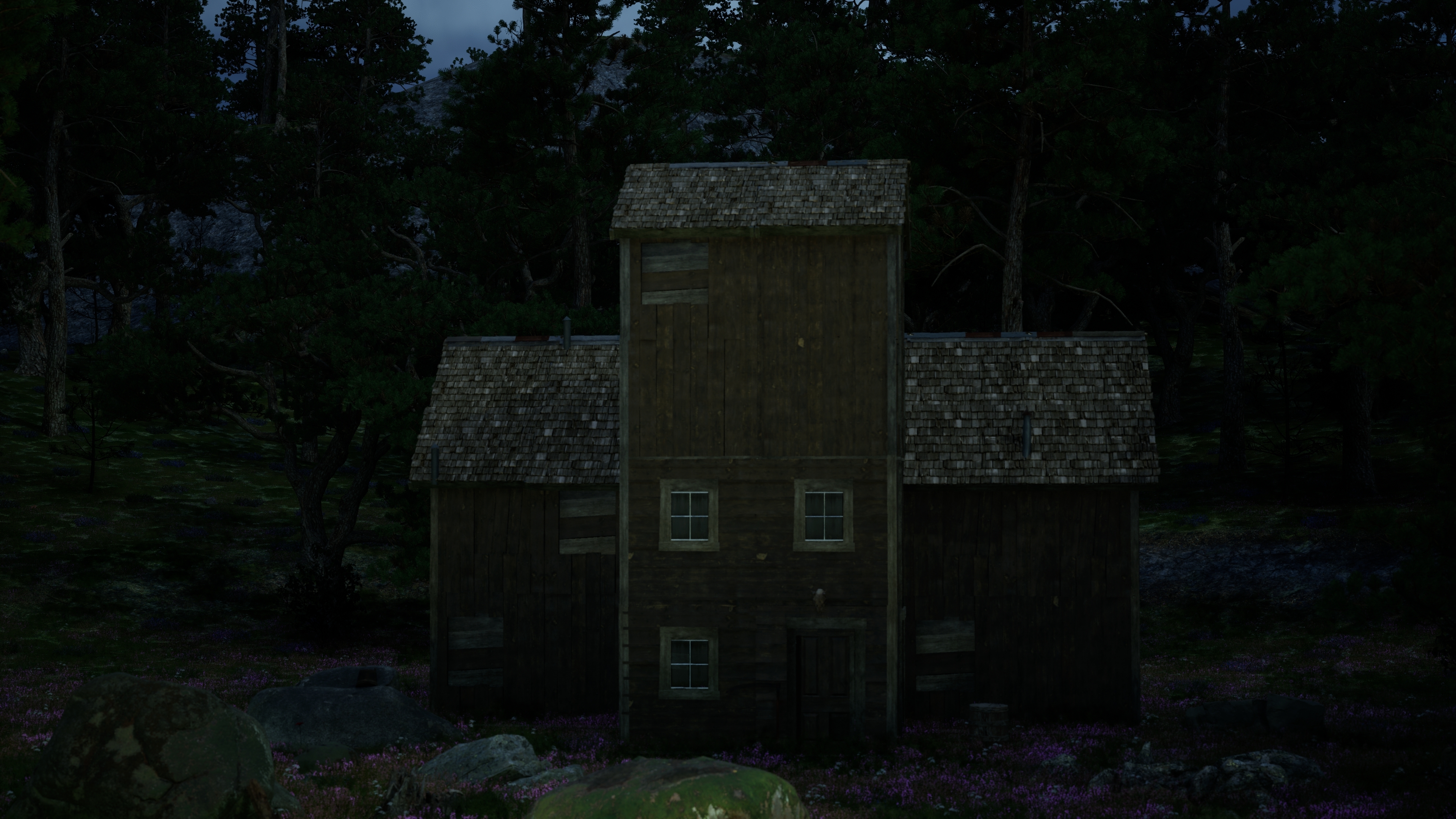 Hyper’s Basic Forest PCG in a custom environment decorated with Quixel assets. This time the building was created using Blender with the Procedural Building Generator 2.