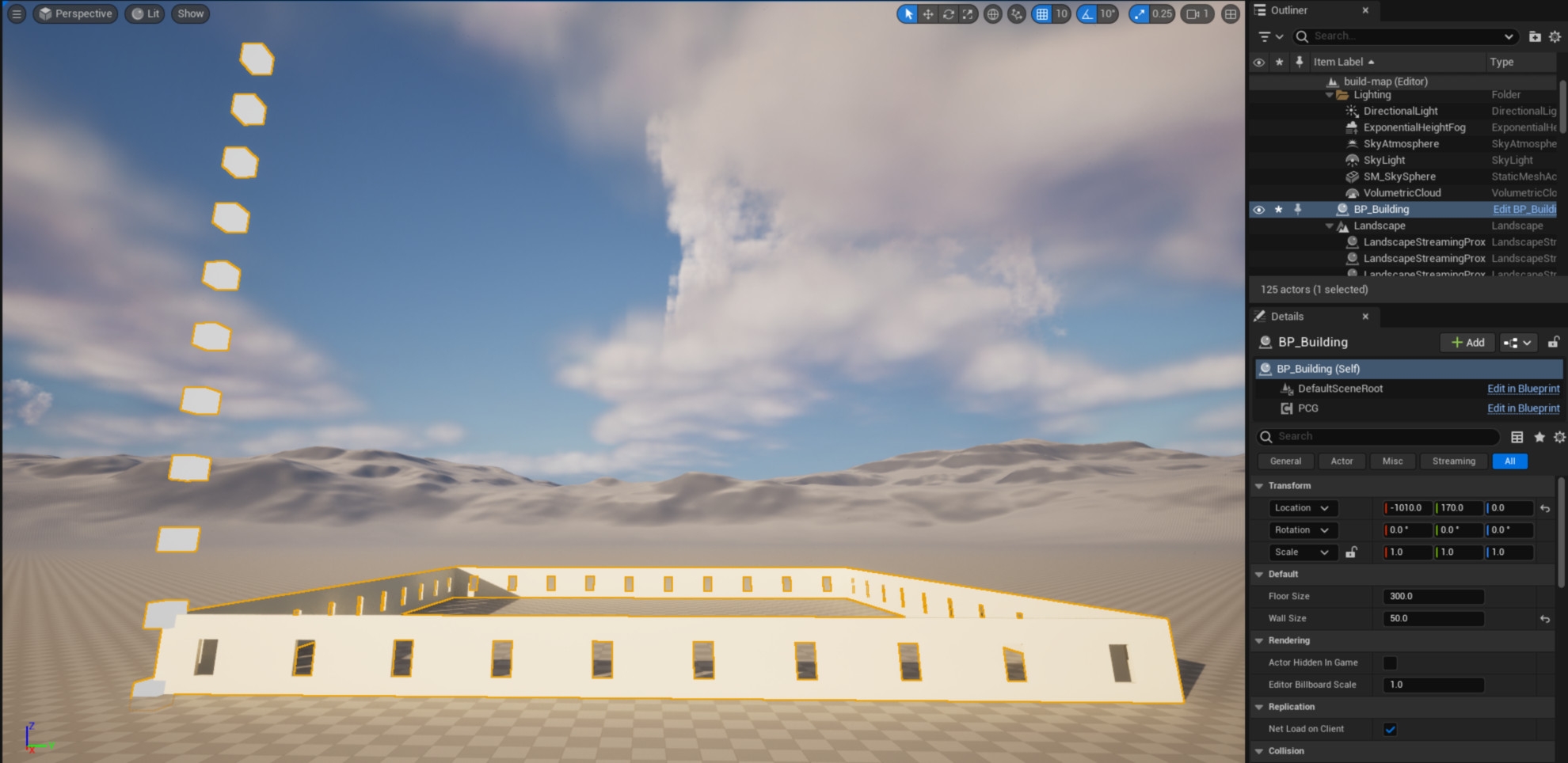 Of course, PCG Graphs also work for the generation of man-made structures such as walls, roads and buildings. As the system is still quite new and the documentation is rather sparse so far, we have to rely on examples from Unreal users, who have been able to discover solutions through trial and error. As already mentioned, it is to be expected that this area will be better documented and easier to use in the near future.