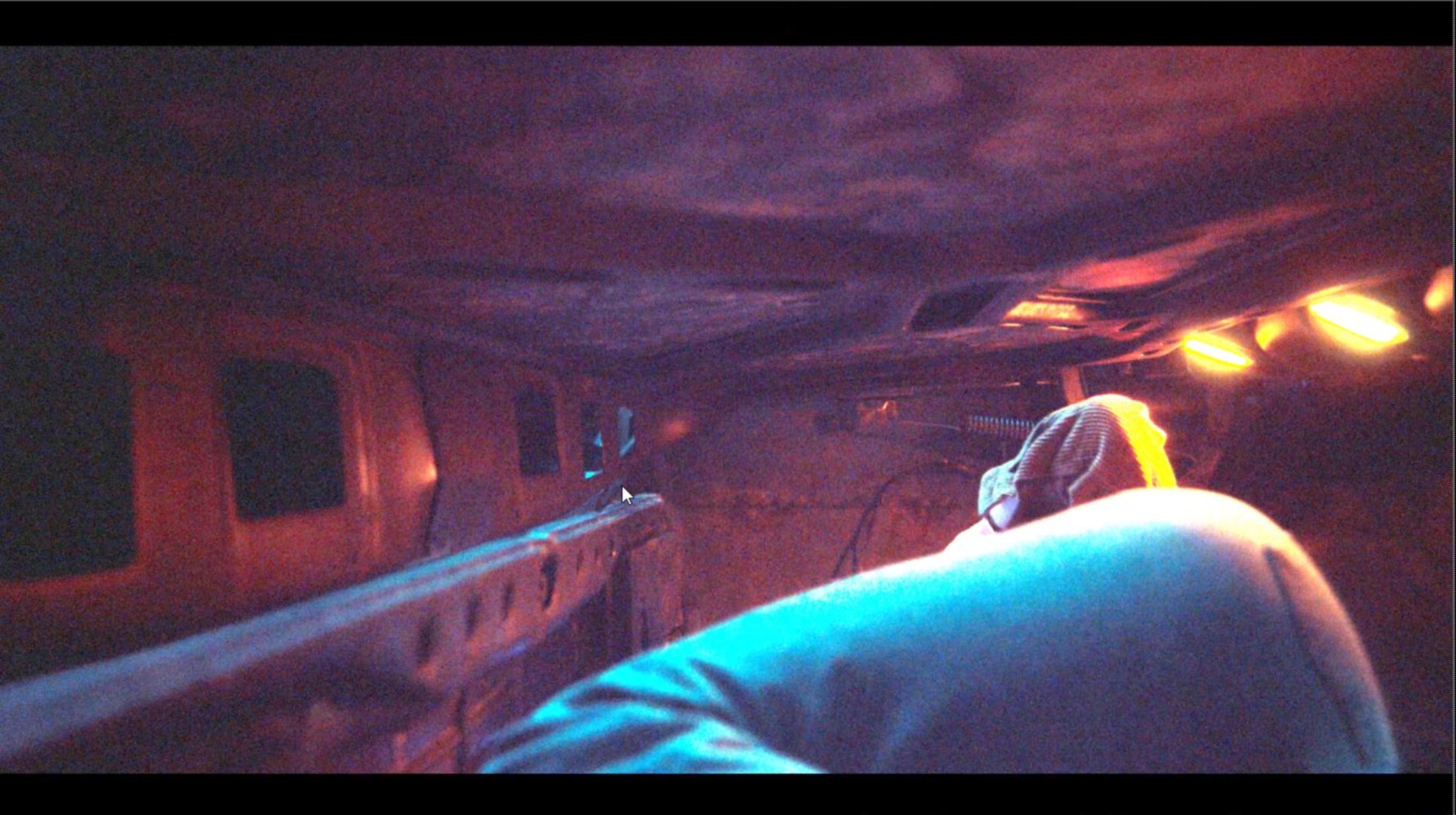 The real-time abduction story should feel real and so all the flashbacks that the main character can reconstruct using an action cam are actually physically filmed from the screen. No frame-filling, grading-shifted flashbacks, which we would have considered cheating.