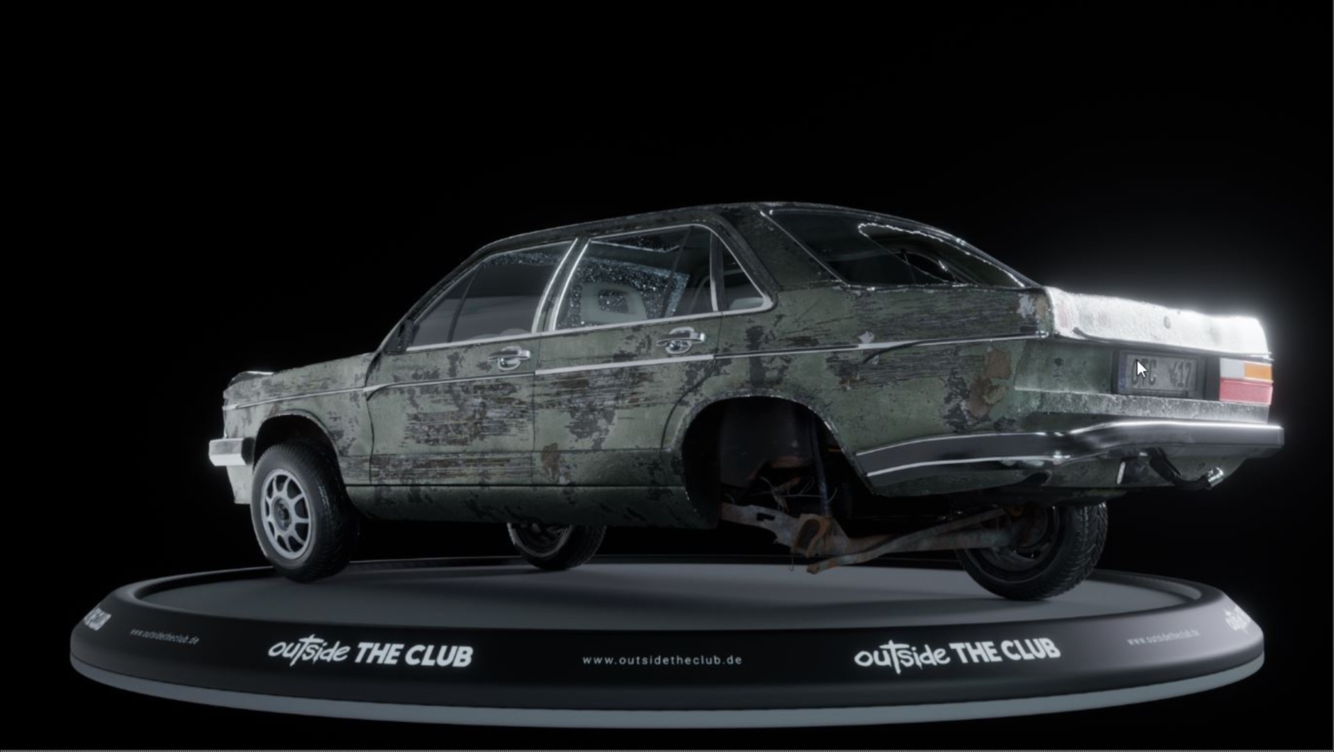 We proceeded as follows: Firstly, the car boot walls were already created from the set design. After filming, the entire boot was broken down into its individual parts and each wall was scanned individually as a 3D lidar scan with an iPhone. The apps used were “Polycam” and “Scaniverse”. The digital model was then used as a reference to remodel the boot walls according to this model. One difficulty here was the metallic surface texture of the boot, which meant that the scan could mainly be used as a reference.