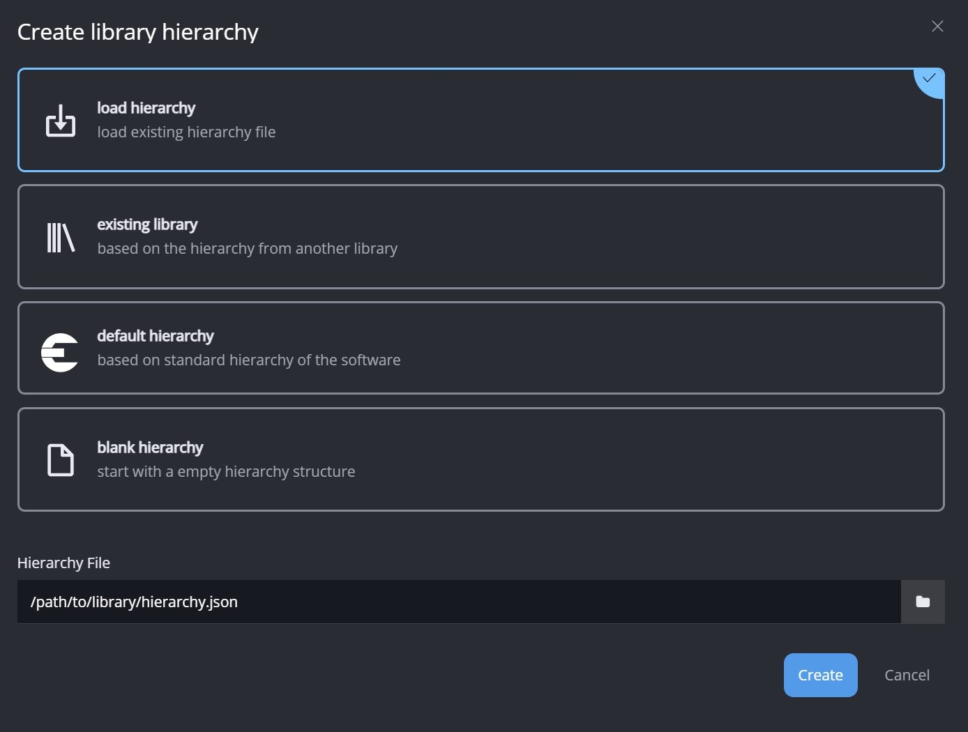 Hierarchical tree structure per library