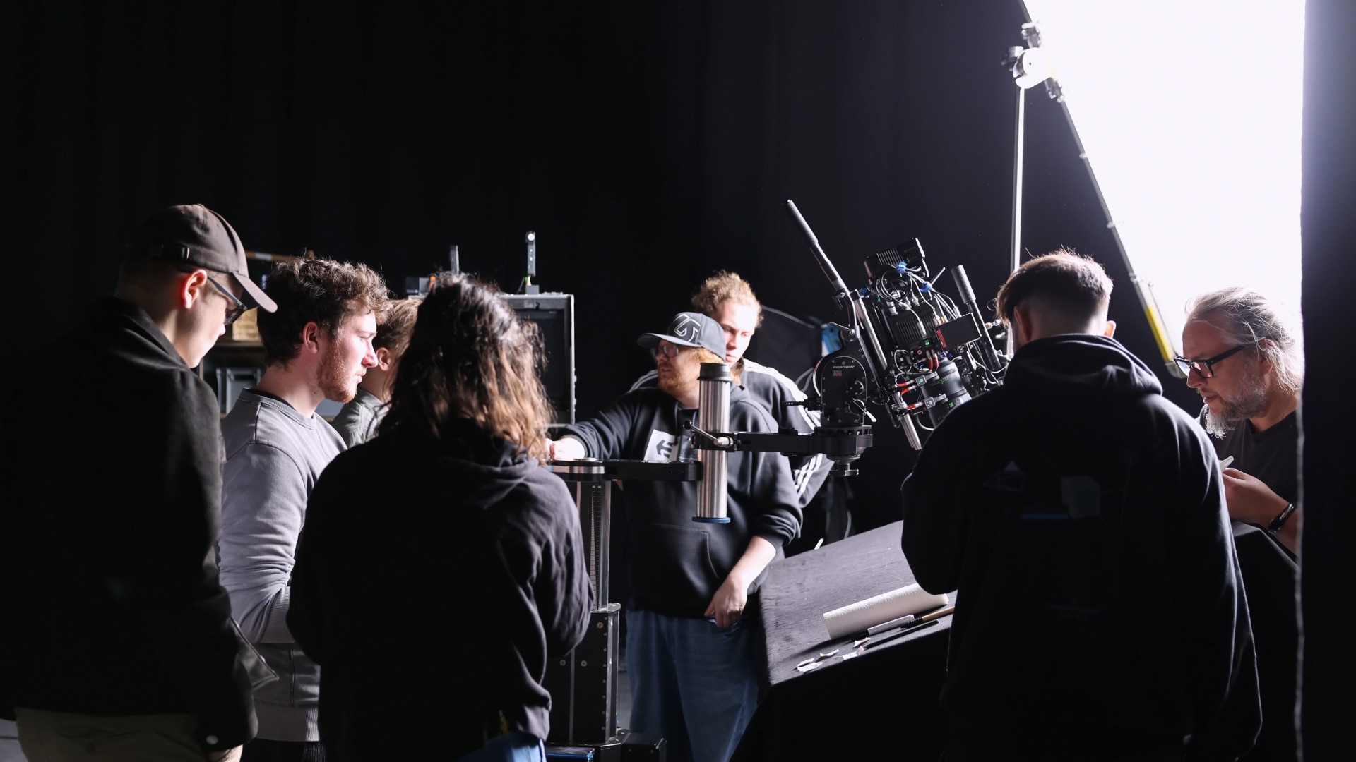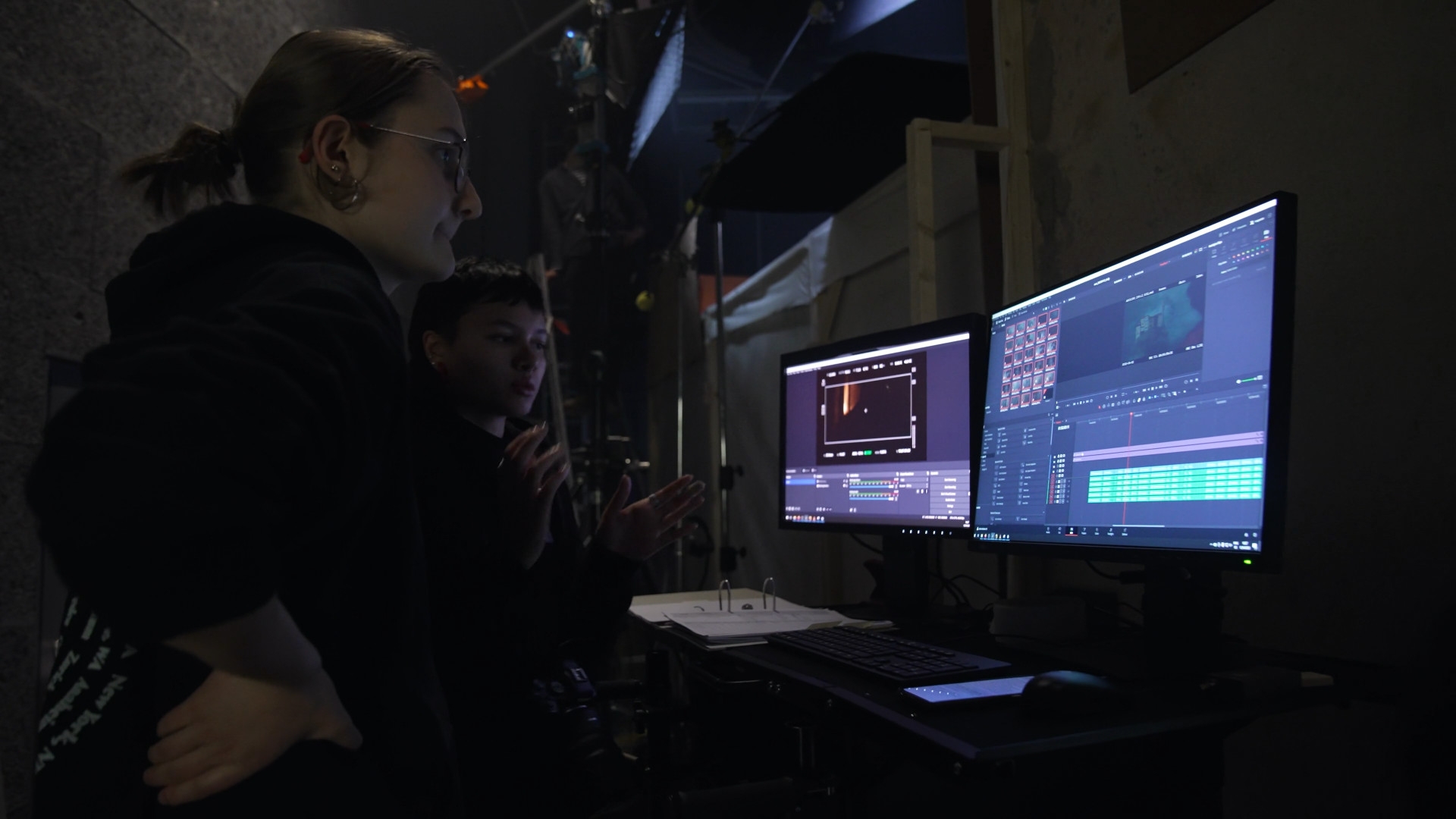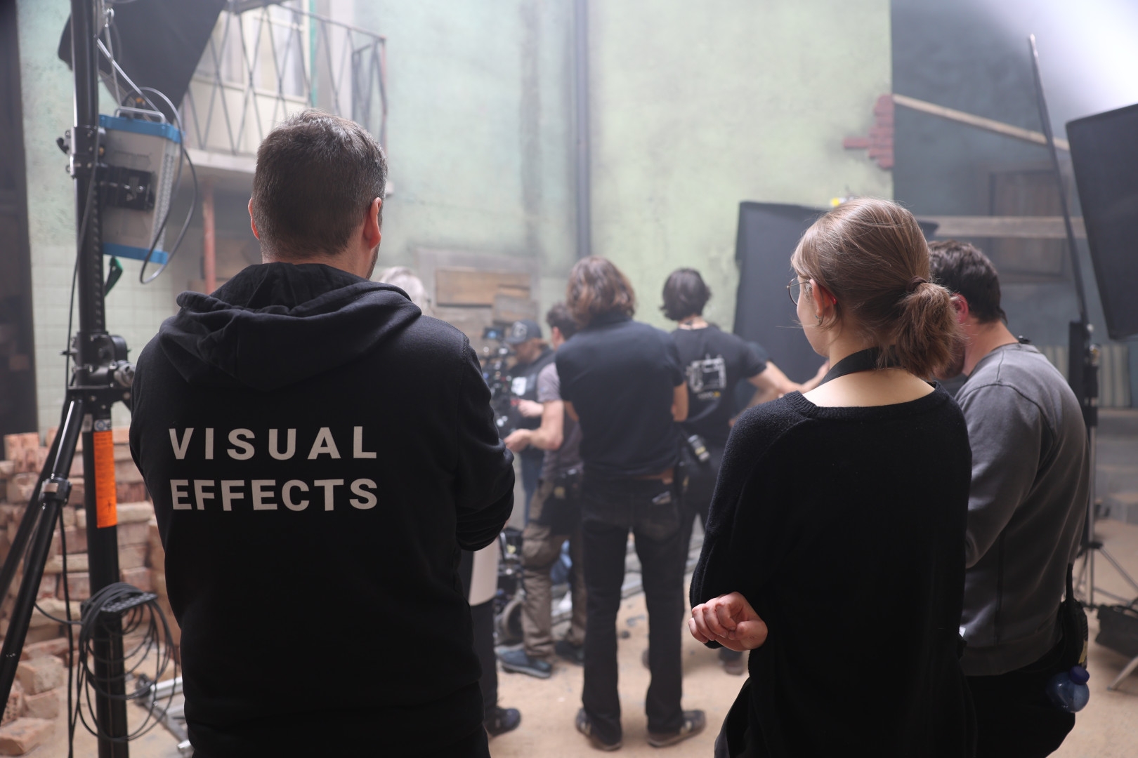 The different “roles” were rotated daily between the 5 VFX students so that everyone could gain an insight into the different activities. They also took on the tasks of the DIT (Digital Imaging Technician). Thanks to a mobile workstation, not only can the backups be made, but the dailies can also be rendered directly. Another advantage was the ability to process 3D scans on site and create slap comps to identify potential problems.