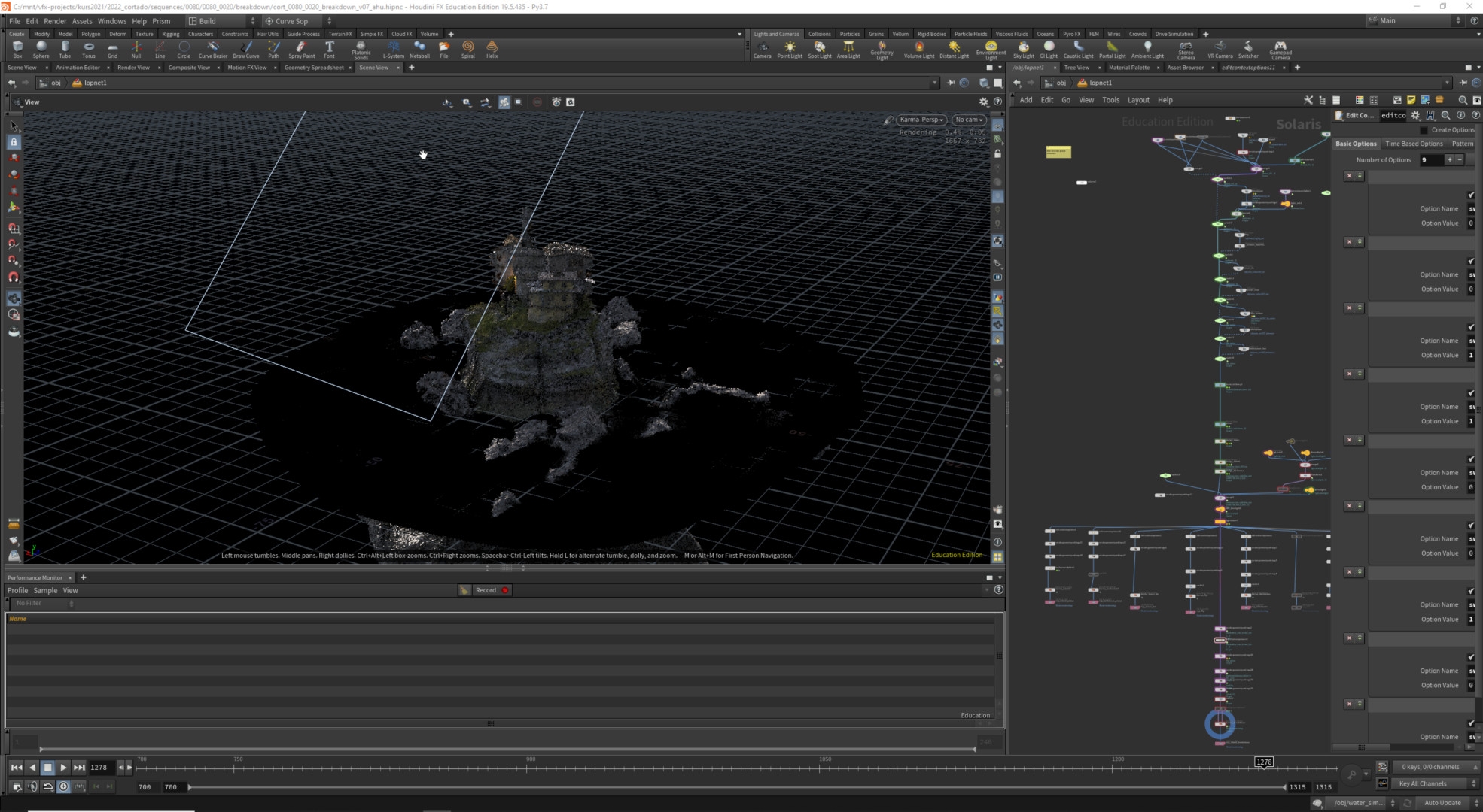 The professional help of CG supervisor Frank Dürschinger, who supported the students with the basic principles of lighting through to the individual shots, was also important here. However, light alone is not enough to create a photorealistic image. The interaction with the light is influenced by the shaders. As the entire process of lighting, shading and rendering took place in Houdini, the students used MaterialX shaders to guarantee a high degree of flexibility between the programmes. To increase the level of realism, the texture of the island was combined with several PBR materials.