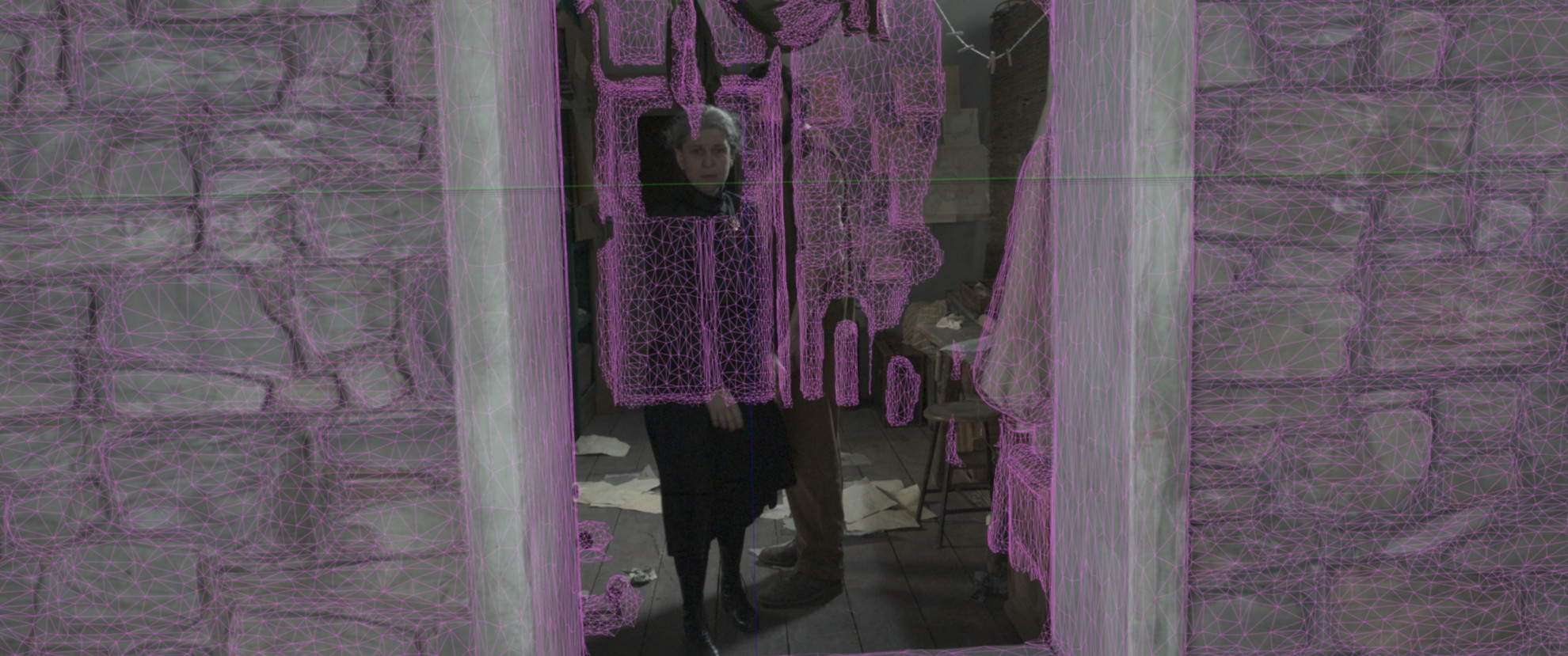 In the film sequence where Lino’s fear reaches its climax and he goes into a panicked state where he perceives his grandmother as a demon-like being, her altered appearance was also supported with visual effects. The eyes were tracked in Nuke, rotoscoped and coloured black, while retaining the real highlights to preserve the plastic appearance of the eye.