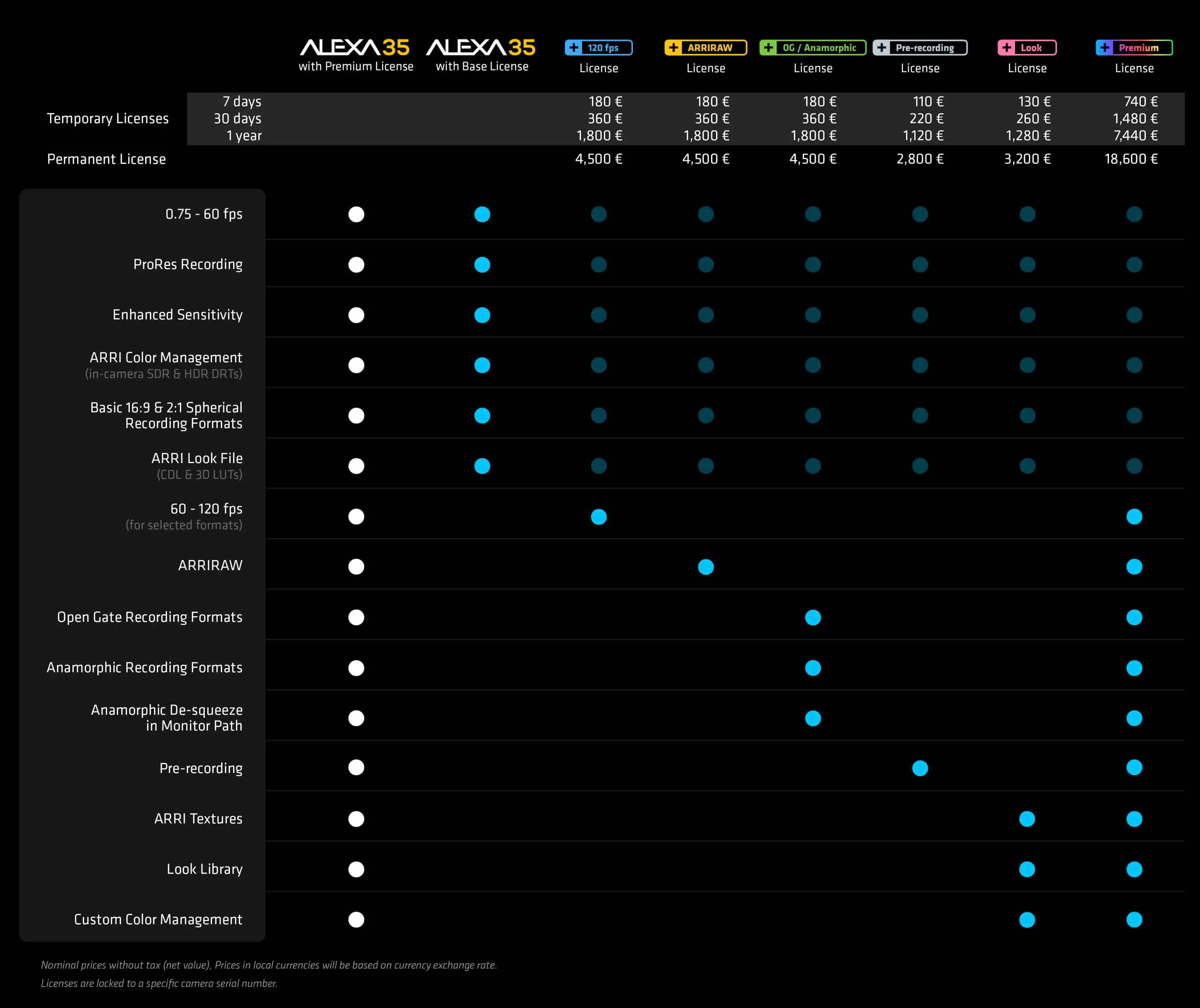 - ARRIRAW License – Unlocks full ARRIRAW recording up to 4.6K resolution.