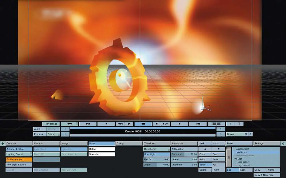 The 3D environment was blistering fast compared to all the competition out there. It really took advantage of the Wildcat 3 Graphics Card and the software utilizing OpenGL. In that regard 5D was unique – while the hardware was not custom-built like Henry nor the operating system customized like with Discreet, it was not written for generic off-the-shelf hardware either. When you ran Cyborg without that specific card, the 3D environment was much more unresponsive and more on par with the performance of Shake and Combustion at that time.