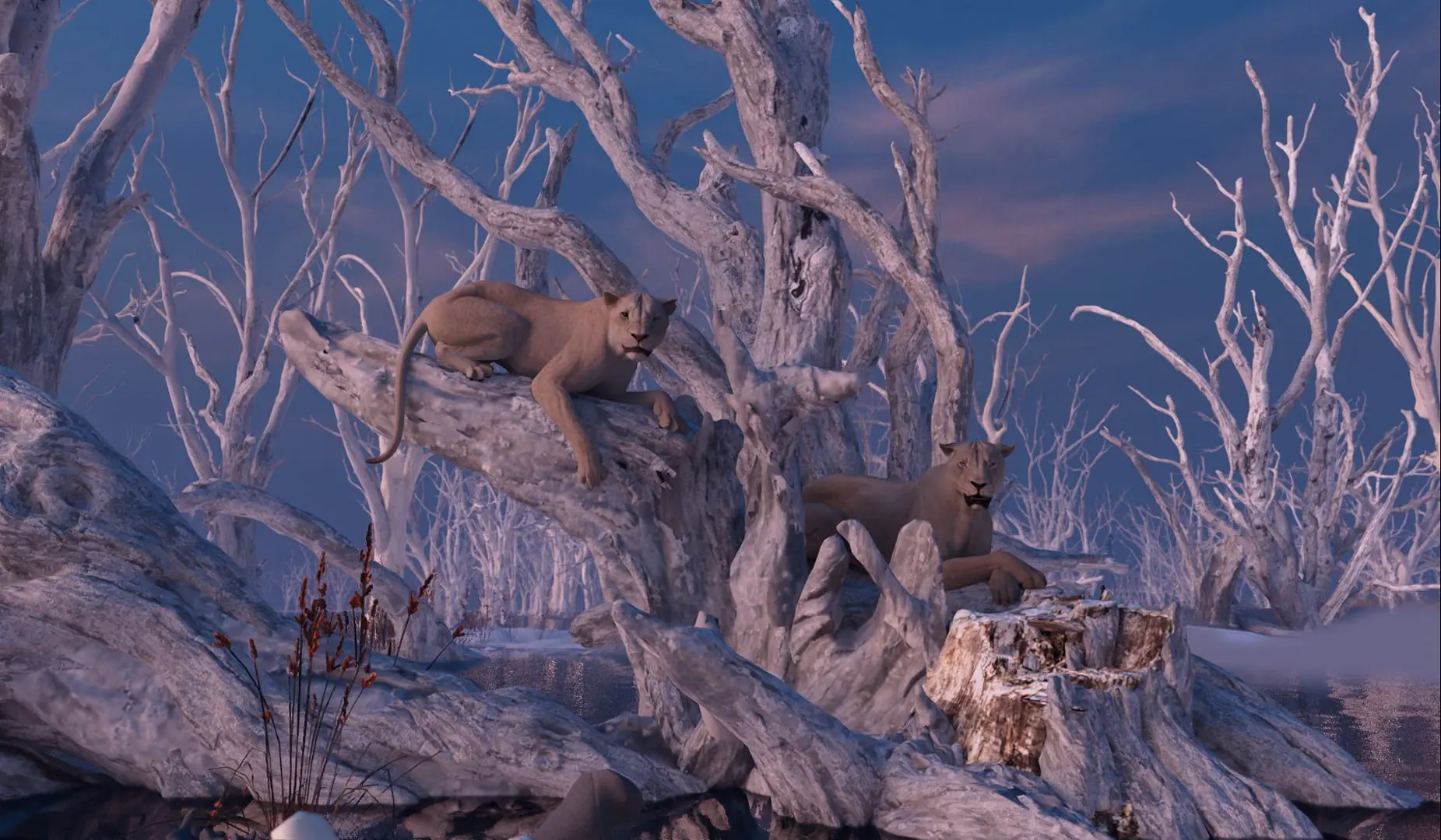 Audrey Ferrara: Mark Friedberg and his art department built all the sets in Unreal, so the filmmakers could do the scouts of sets in VR. After a set was approved, james Laxton, the cinematographer would spend time setting up his lights in the scenes, getting ready for the shoot. Unreal offered an incredible flexibility for the filmmakers, allowing them to walk the environments, art direct live the spaces or the action of the lions, thanks to the quadcap tool developed by MPC, or to change the lighting live if necessery.