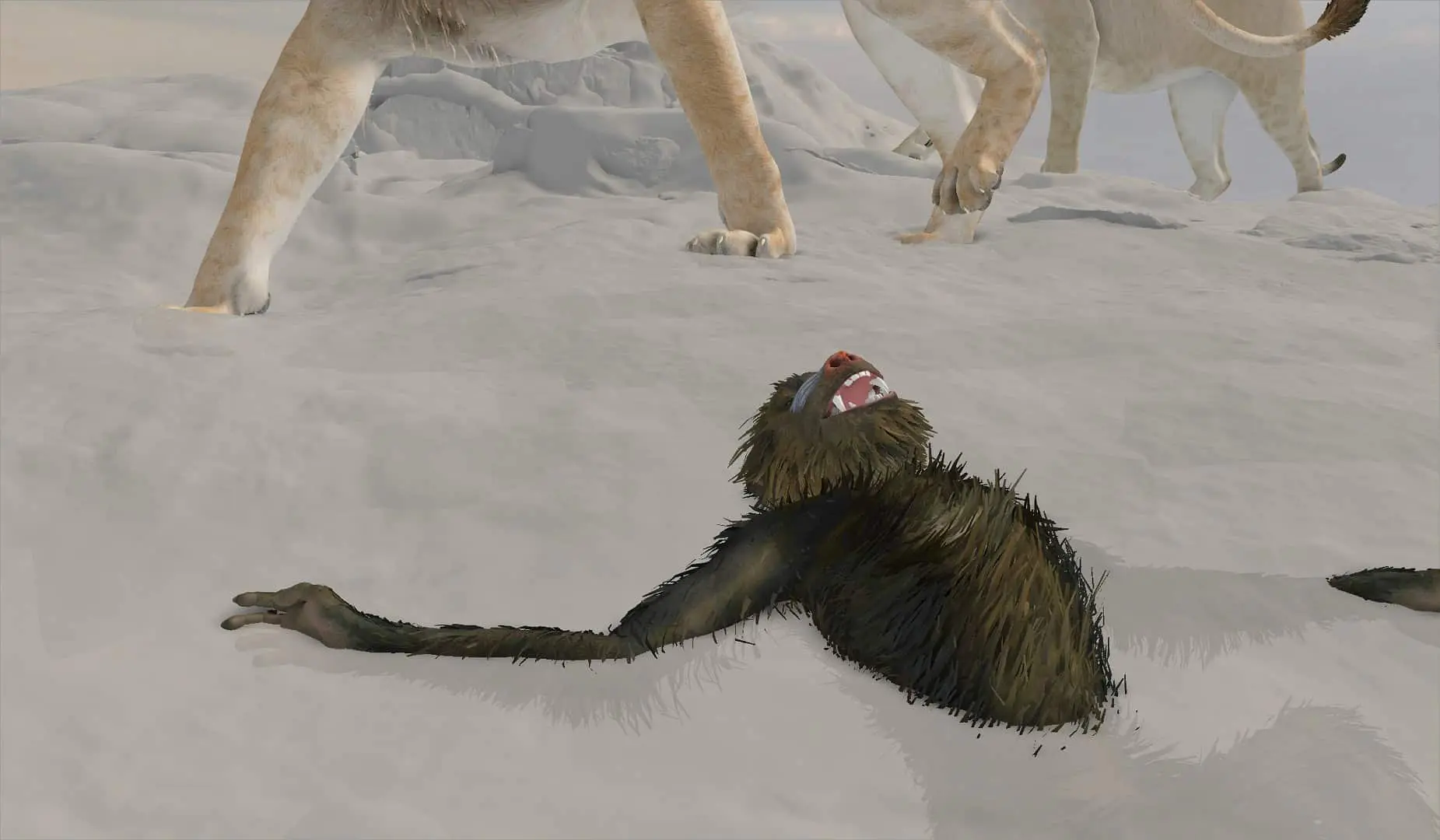 For Mufasa, MPC developed a new fur pipeline called LOMA. It allowed the team to have more fur, better control of the curves of the hair, and more precise simulations. The different weather conditions throughout the movie resulted in new challenges for the techanim team: drenched fur, snow covered fur, close ups of lions fighting with their manes interacting with each other etc…..