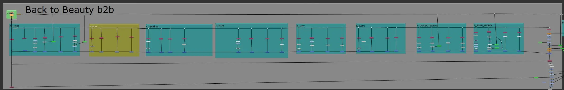 For each light, AOVs were rendered separately. This allowed full control over the lighting mood in Nuke and in the “back-to-beauty (b2b)” process, enabling targeted adjustments in post-production. The lighting setup was overall simple but functional, which was precisely the goal: to create atmosphere without overloading.