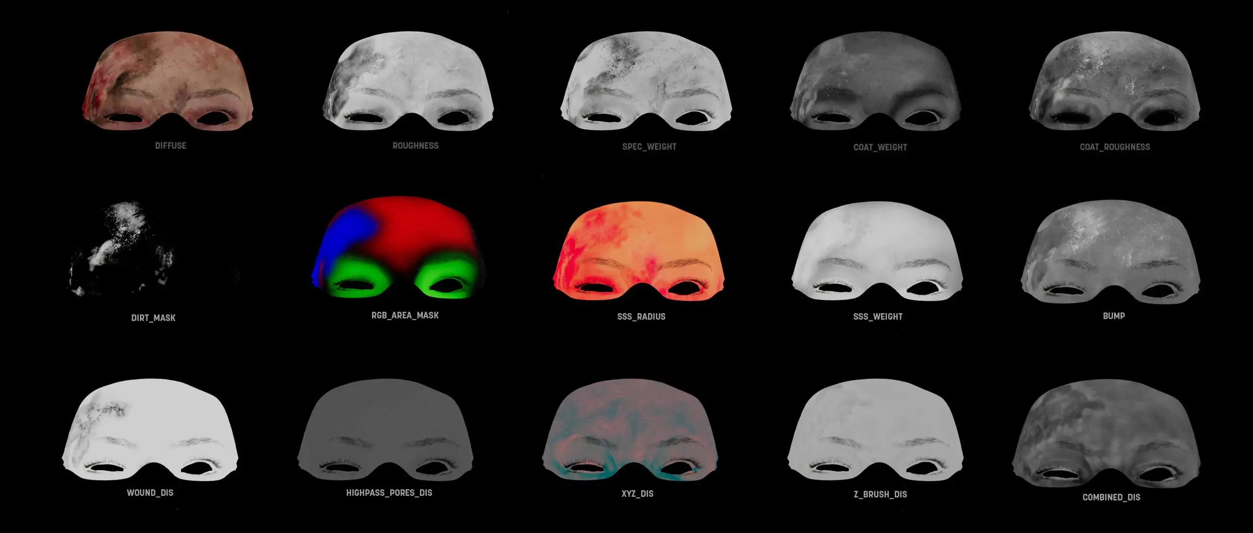 For more control in the shader, secondary maps, layered displacement maps, and RGB area masks were also used. This ensured that the textures functioned as planned and allowed for more flexible work. Storytelling played a central role—every scar, every dirt mark was intended not only to be visually convincing but also to convey something about the character’s fate and experience.