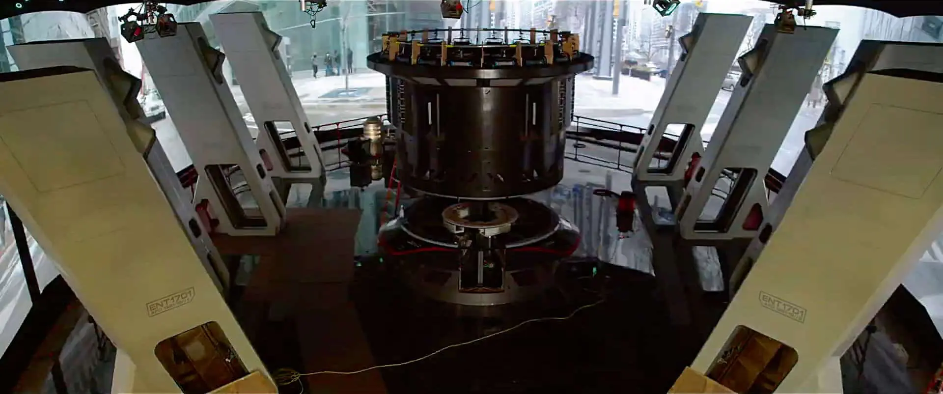 Originally described in the script as a translucent glacial cave in which the protagonists find an alien egg-shaped construct that reacts to Spock’s voice. We found the visual and interactive concept exciting and this inspired us to take the idea to the next level. To this end, we pitched the idea of transferring the hieroglyphics on the “egg” to the ice wall and linking them to the practical set with the help of an internally developed integration.
