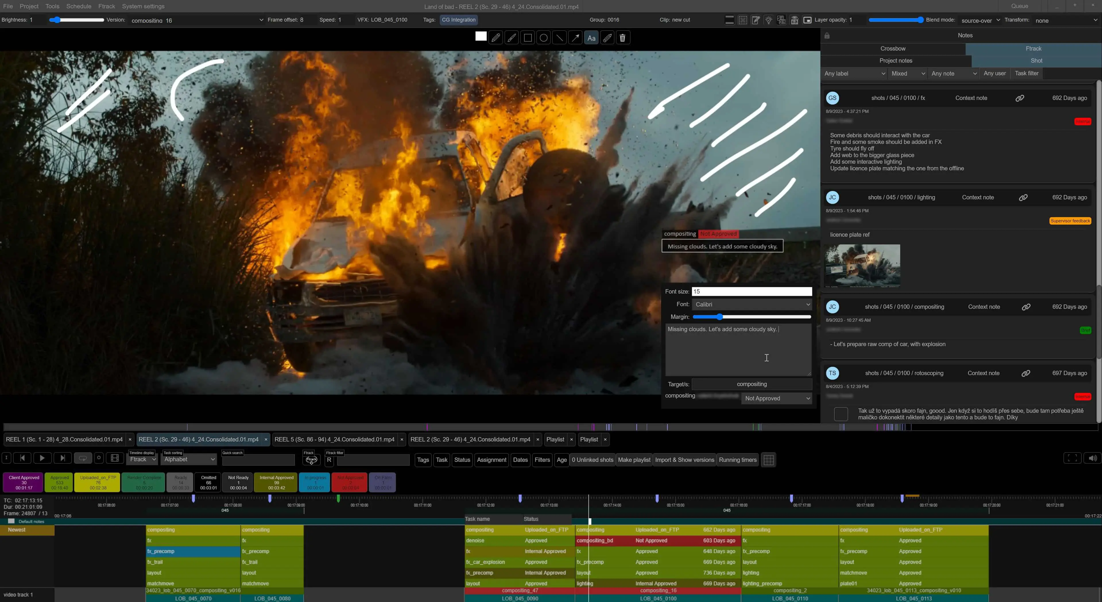 Just three years ago, before Crossbow was ready, we often spent hours on calls with directors just to clarify intentions across the film. Today, that process is much quicker and clearer because we can jump straight into scenes and shots, without long prep. Everything can be published to Ftrack right away.