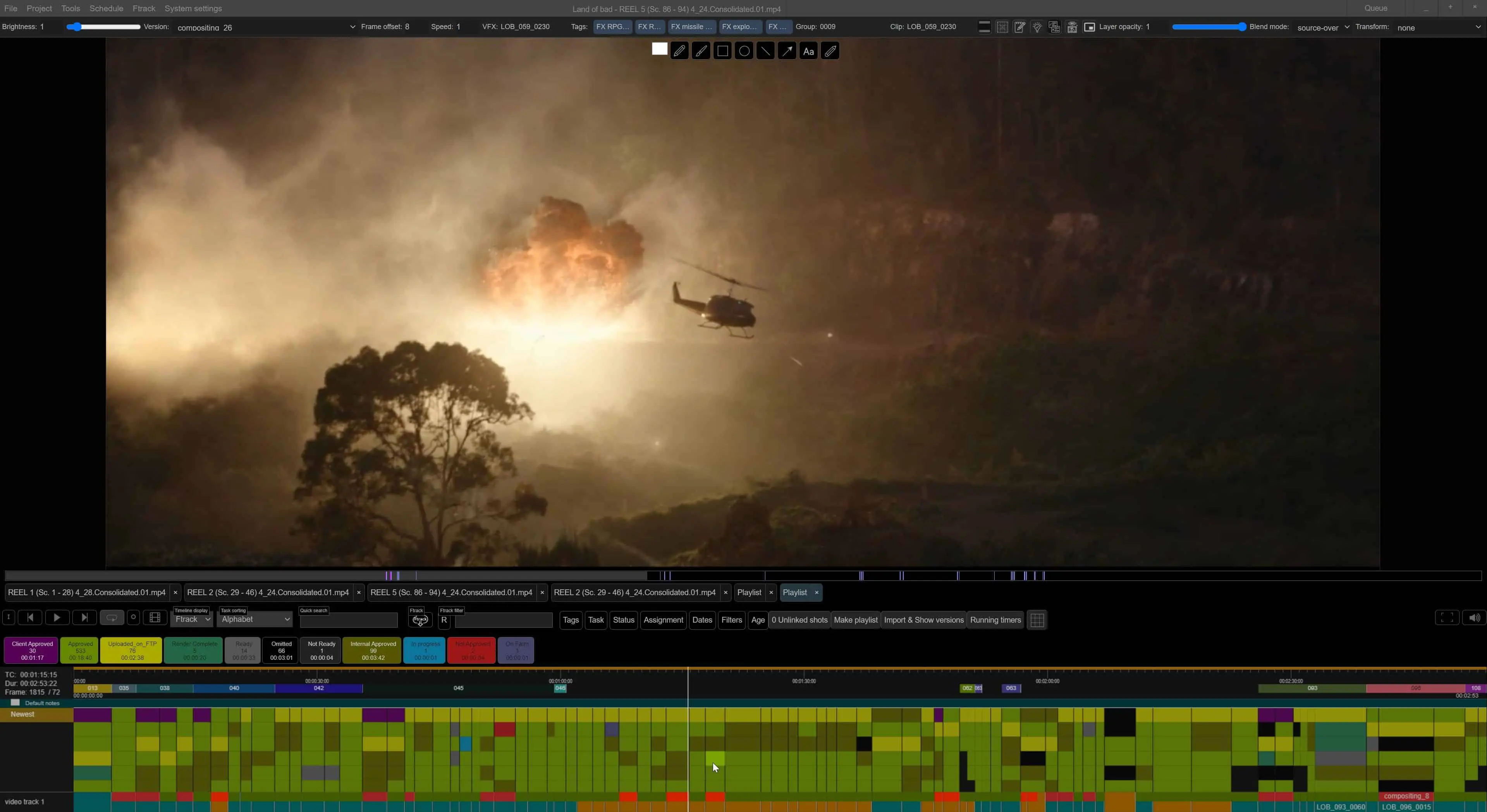 Example: imagine you’ve got 15 days left until the hard deadline, and 110 shots are still at 0%. You need to involve 10 compositors from two locations at once, and they’re working on similar shots within the same sequence. In that scenario, you either have a system that helps you prioritize quickly, catch issues and dependencies, or you spend the final 8 days in extreme stress, hoping things will work out, while still reviewing 80 shots and only then starting to finalize them. In that case, Crossbow wasn’t a panic amplifier, it was a stabilizer.