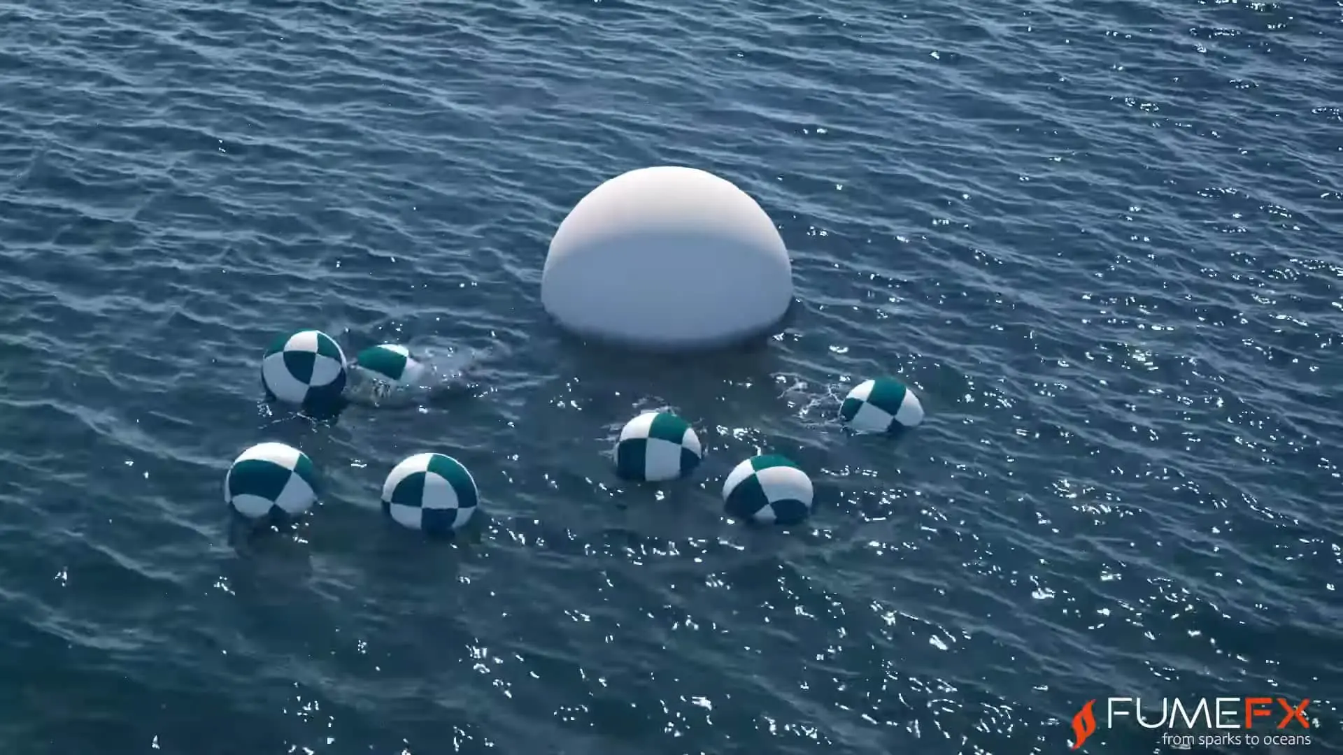 The Ocean Dynamics node introduces true two‑way interaction. Objects generate ripples and wakes, while the water applies buoyant and frictional forces back onto them. Artists can insert geometry or particles into the ocean via the Ocean Object node, with fine control over buoyancy, inertia, friction and wake strength.