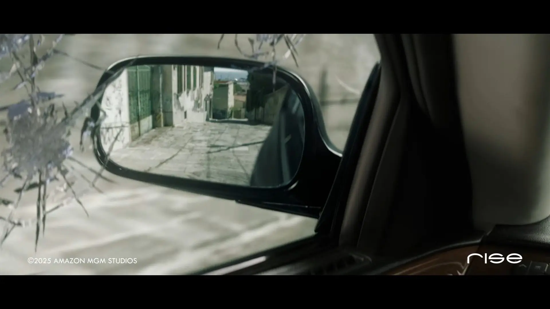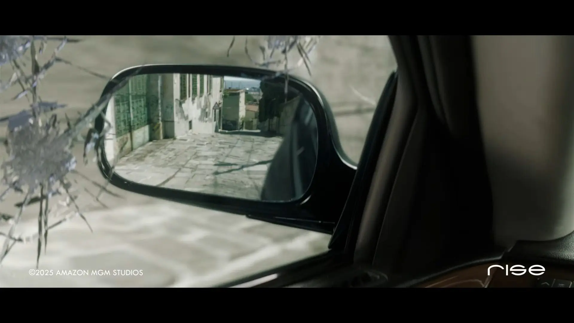 Alex: One of my favourite shots is an incredibly simple one. The Beast is reversing down a hill whilst under fire. The shot is from Idris’ POV and is framed on the wing mirror of the car. A bullet shot hits the wing mirror and blows it off.