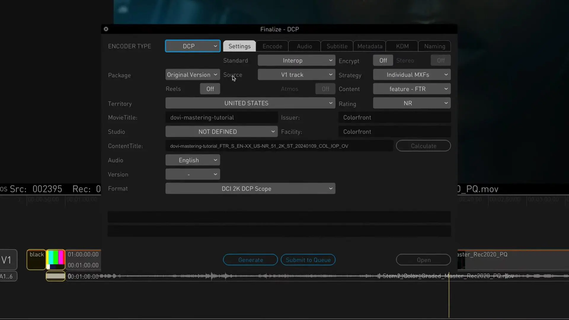 For the creation of theatrical deliveries, mastering systems can use the Dolby Vision metadata created and optionally modified in the color grading process to create corresponding DCPs, either for DCI (SDR) or Dolby Cinema (HDR) playback.
