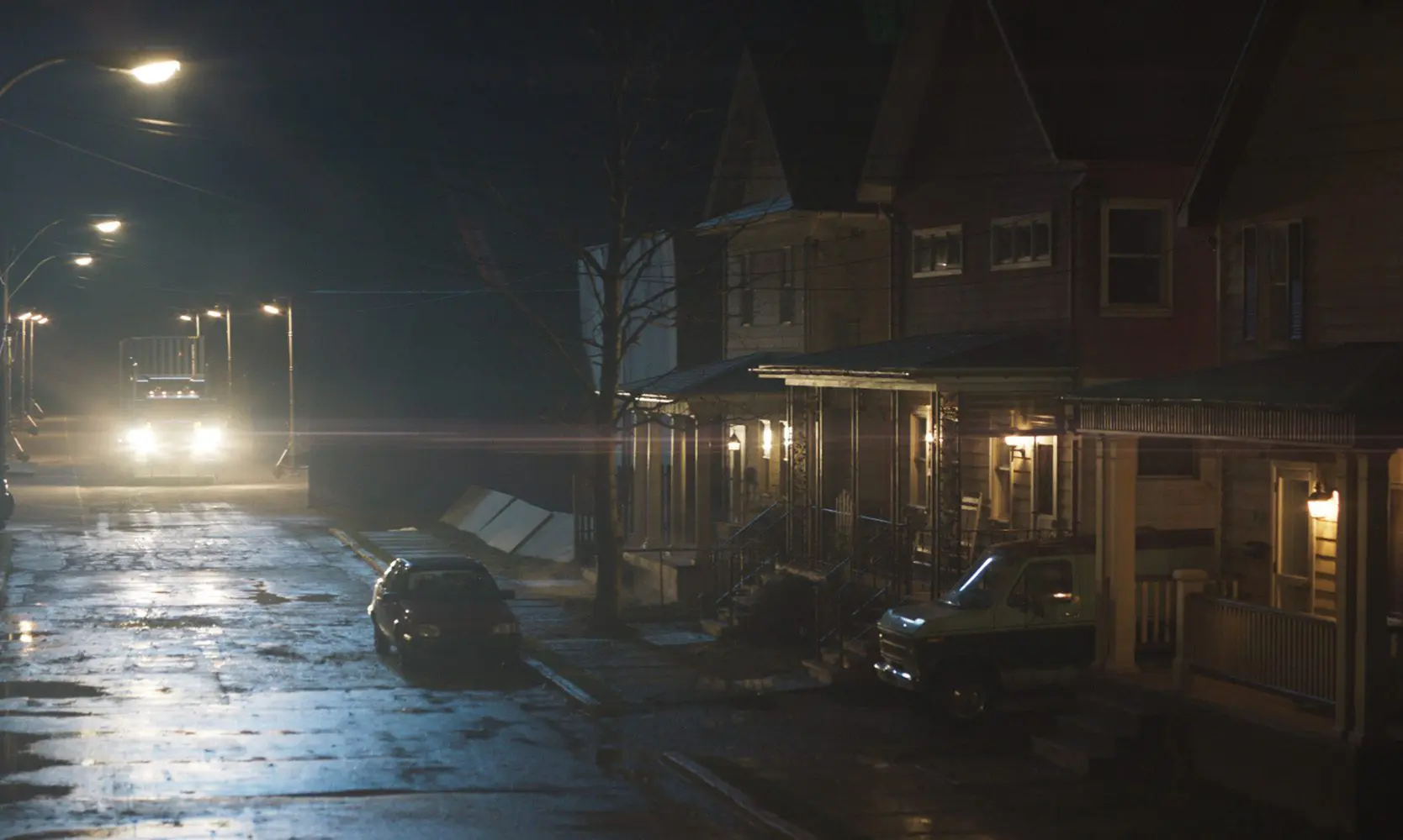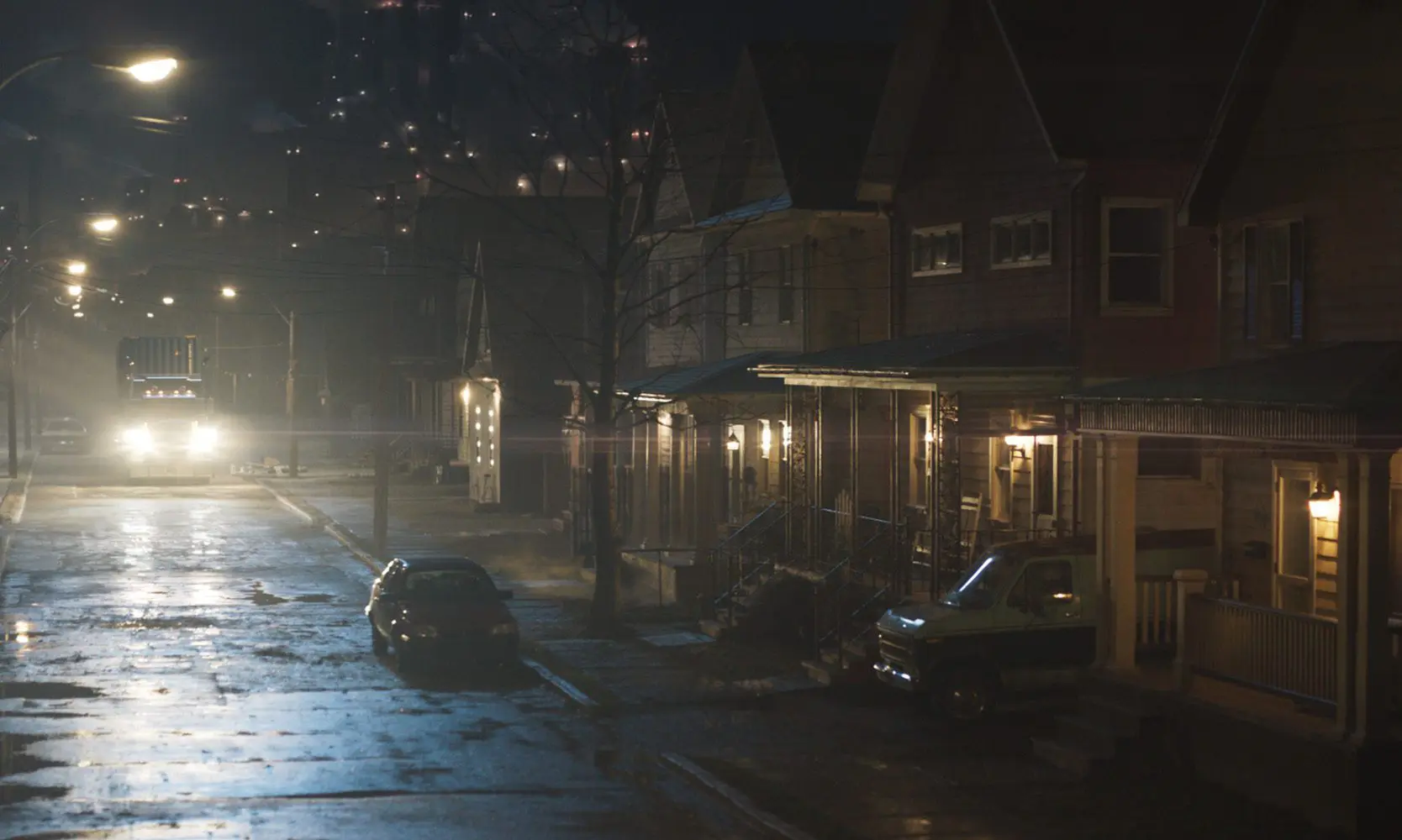 DP: You’ve mentioned the Pennsylvania mill town environment. Can you walk us through how the team extended sets into a fully believable small town, while keeping continuity across day and night shots?