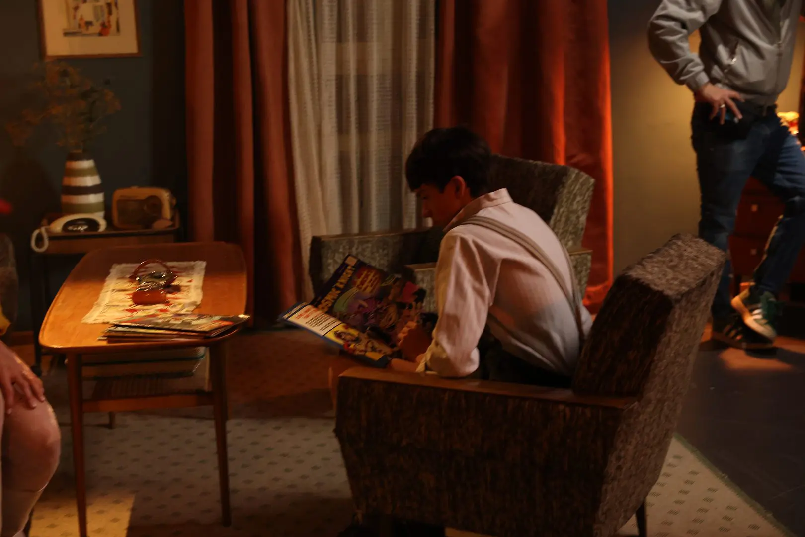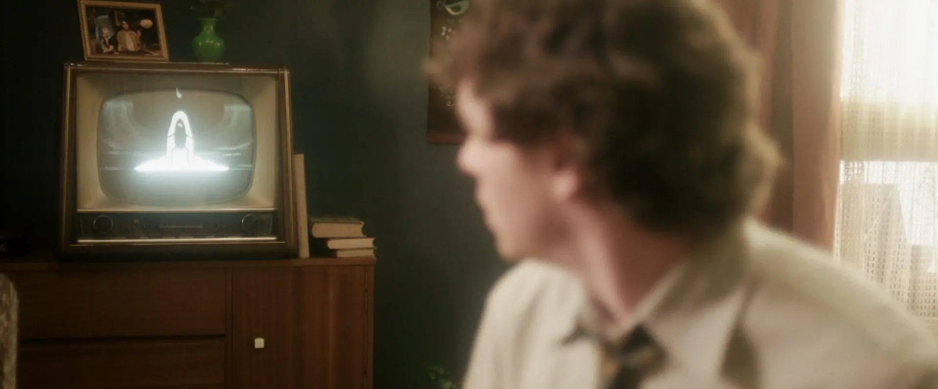The comic books lying on the hotel room table were illustrated by Vanessa Ramovic and depict the adventurous “Cosmic Knight” Clarence’s childhood hero and career role model. Sonja Latussek animated the Cosmic cartoon shown on the small CRT television behind Clarence using the drawing and animation software Krita. She aligned the hero’s origin story with the comic books and portrayed his journey into space. Each frame was drawn individually, giving the cartoon its distinctive two-dimensional charm. In collaboration with production design, the animation was played back on the television on set.