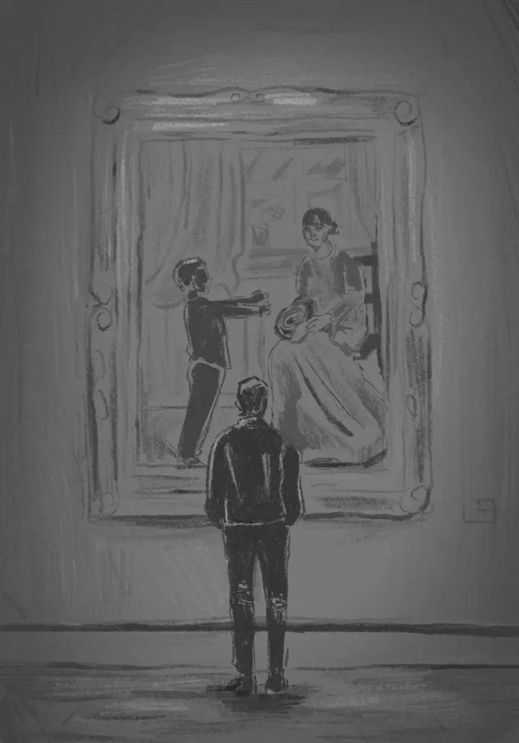 Paintings play a central role in the film. Early in production, we gained valuable insight into the work of the production design department through collaboration with Eva Maria Stiebler, who printed our digitally designed paintings onto canvas and brought them to life. Vanessa Ramovic, Vanessa Chu and Emil Pogolski created the paintings that Clarence observes before entering the ominous hotel room.