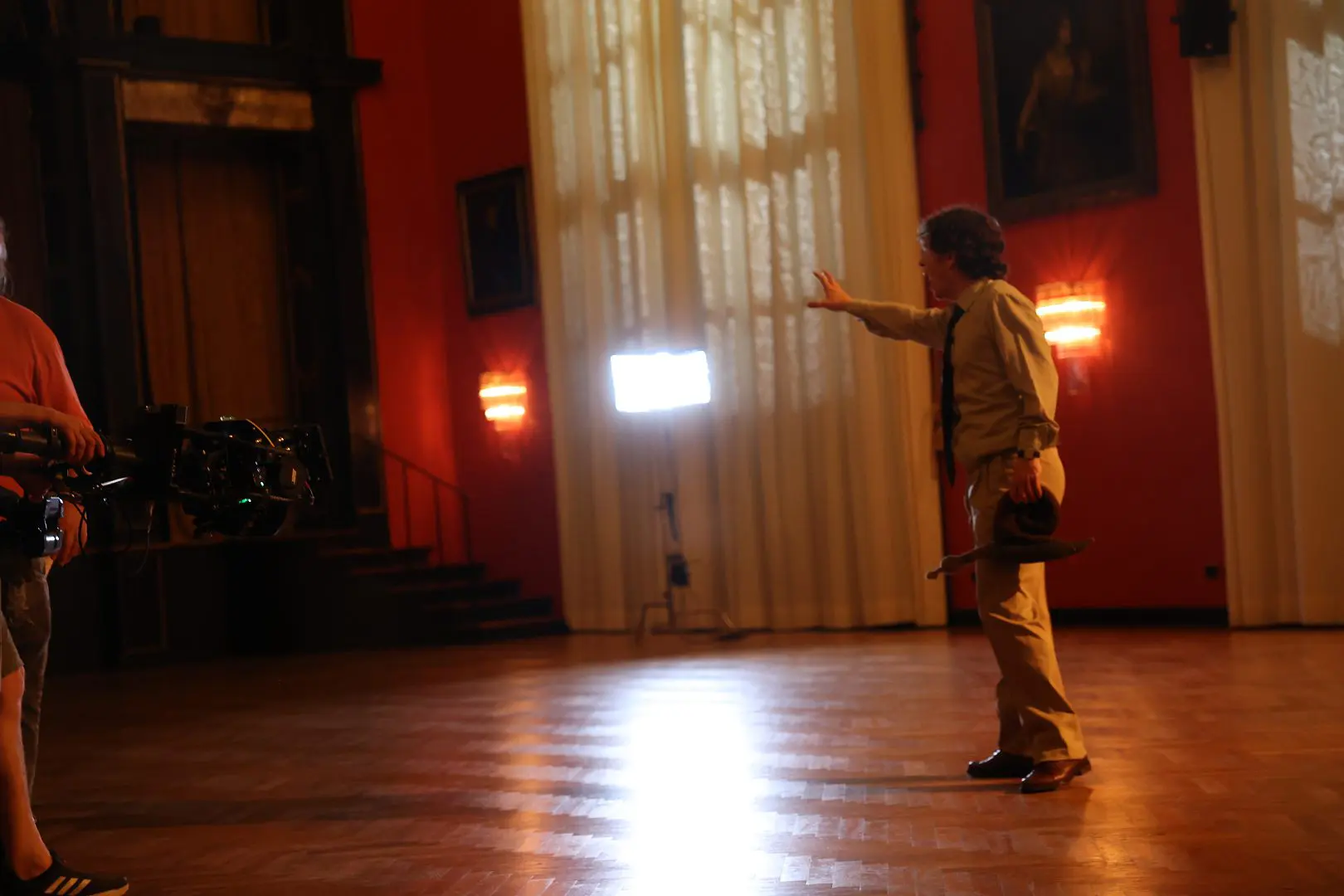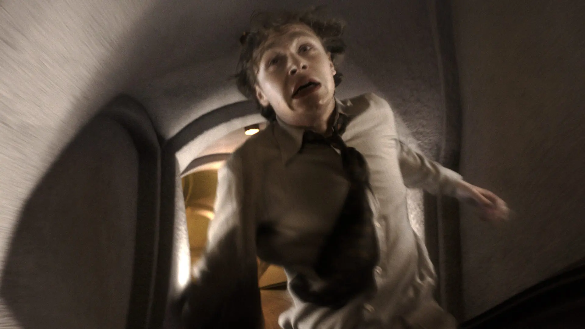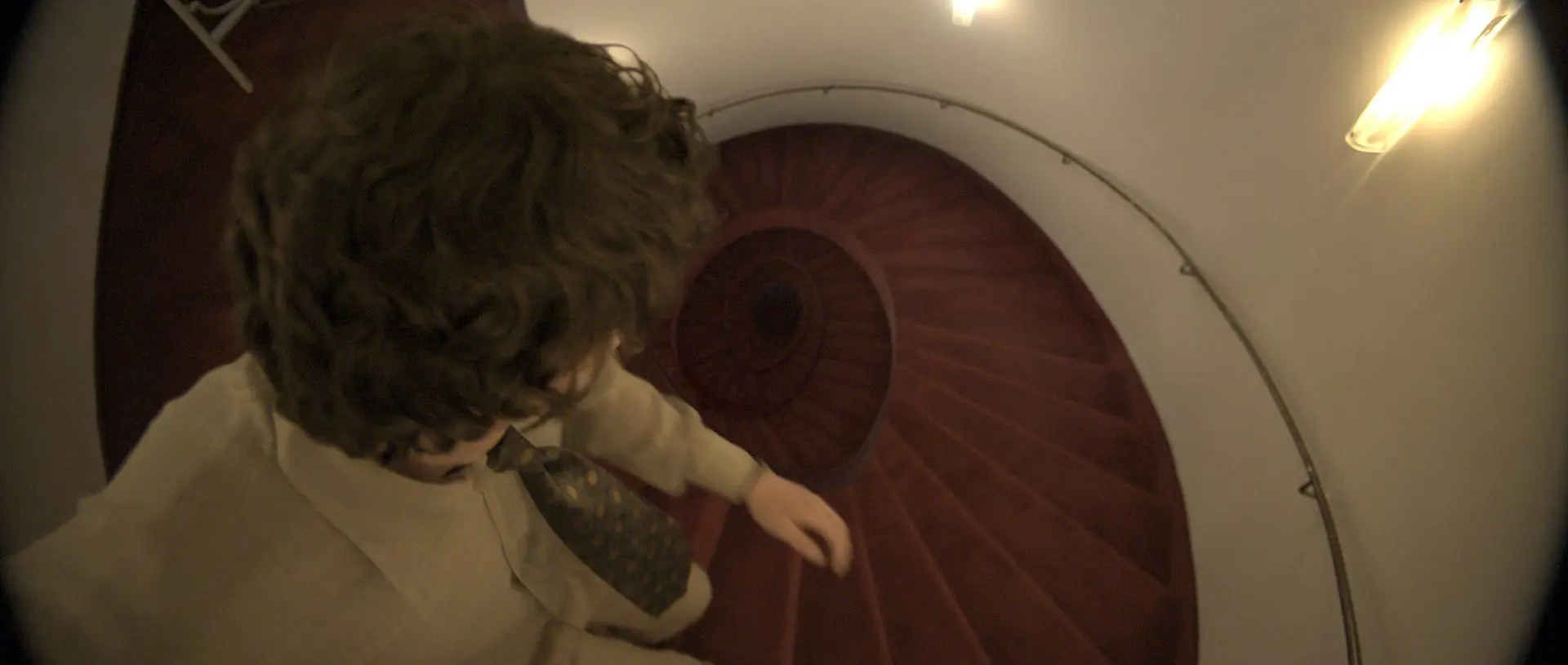 From the start of pre-production, we aimed to visualise Clarence’s inner emotional state. The red spiral staircase at our second Munich location provided an ideal opportunity to depict his descent into memory. Since the physical set could not accommodate infinite depth, Vanessa and Jim digitally extended the staircase. They captured a 360-degree FARO LiDAR scan of the stairwell, converting the spatial data into a 3D environment.