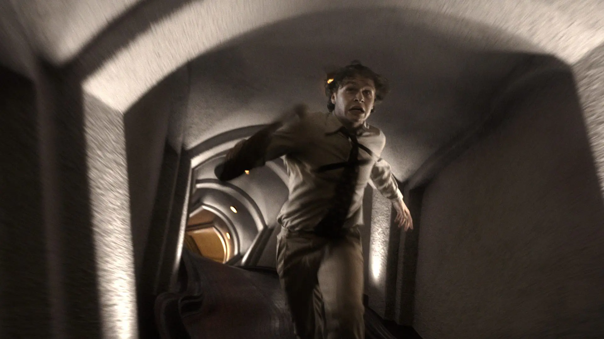 The particular challenge with the spiral staircase was that the real staircase on set did not have a perfect circular shape. This required us to develop a believable transition from the set staircase into our circular CG spiral staircase that extends into depth. It was also meant to feel less steep and cramped than the real-world reference. Another challenge lay in the angles of the steps. On the real staircase, the steps were not perpendicular to the circle’s tangent at their respective positions, but instead met the circular form at a slightly offset angle. For the set extension, however, we wanted an aesthetic solution that would integrate more harmoniously into the staircase. Our goal was therefore to build a transition in which the skewed angles of the set staircase would gradually evolve into the perfect roundness of the digital staircase. We opted for a smooth progression: the closer one gets to the real staircase, the more angled the steps become, while further down they eventually align perfectly perpendicular to the respective circle tangent. This created a flowing transition between the physical and the digital staircase.