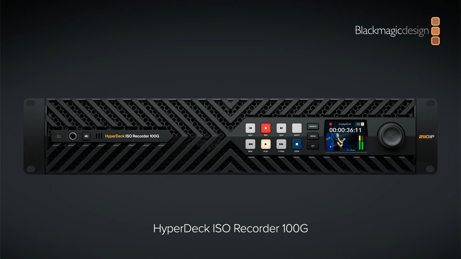 For recording and replay, HyperDeck ISO Recorder 100G is recording eight channels over a 100G workflow to network storage. A key workflow promise is that Resolve can access files while they are still recording, which pitches a tighter handoff between acquisition and post.